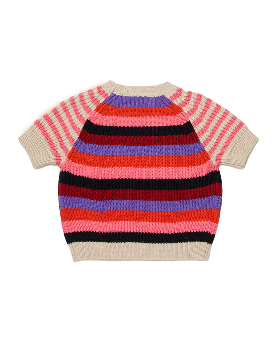 Short Sleeved Sweater w/ Mixed Stripes - Multi