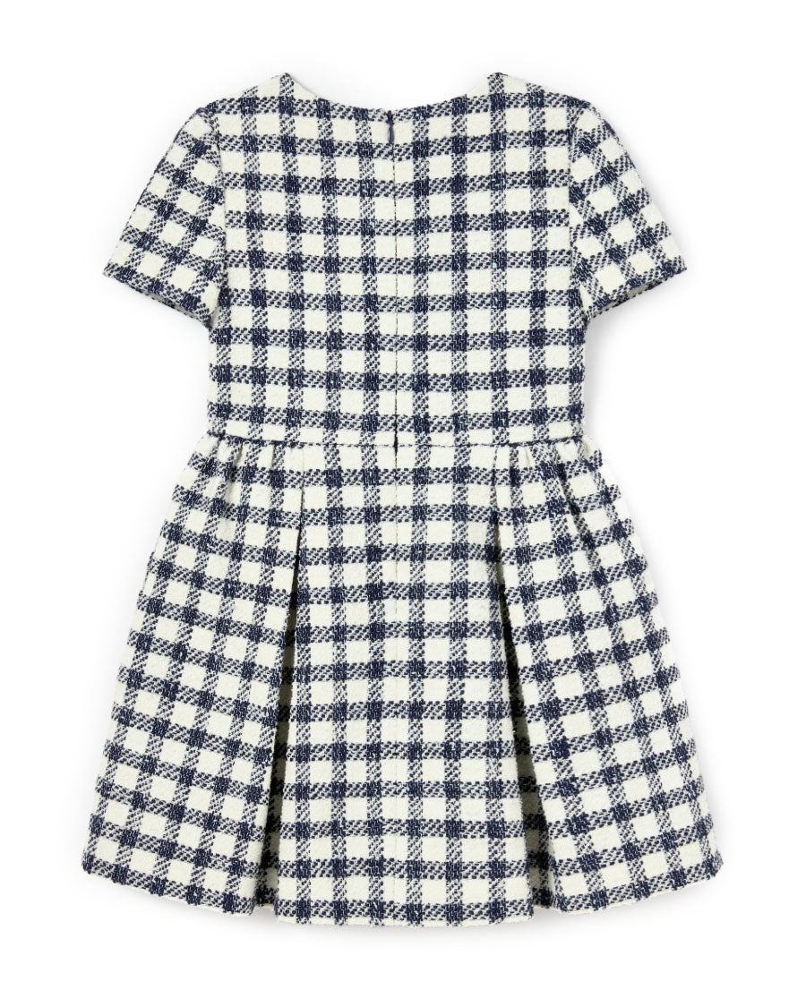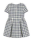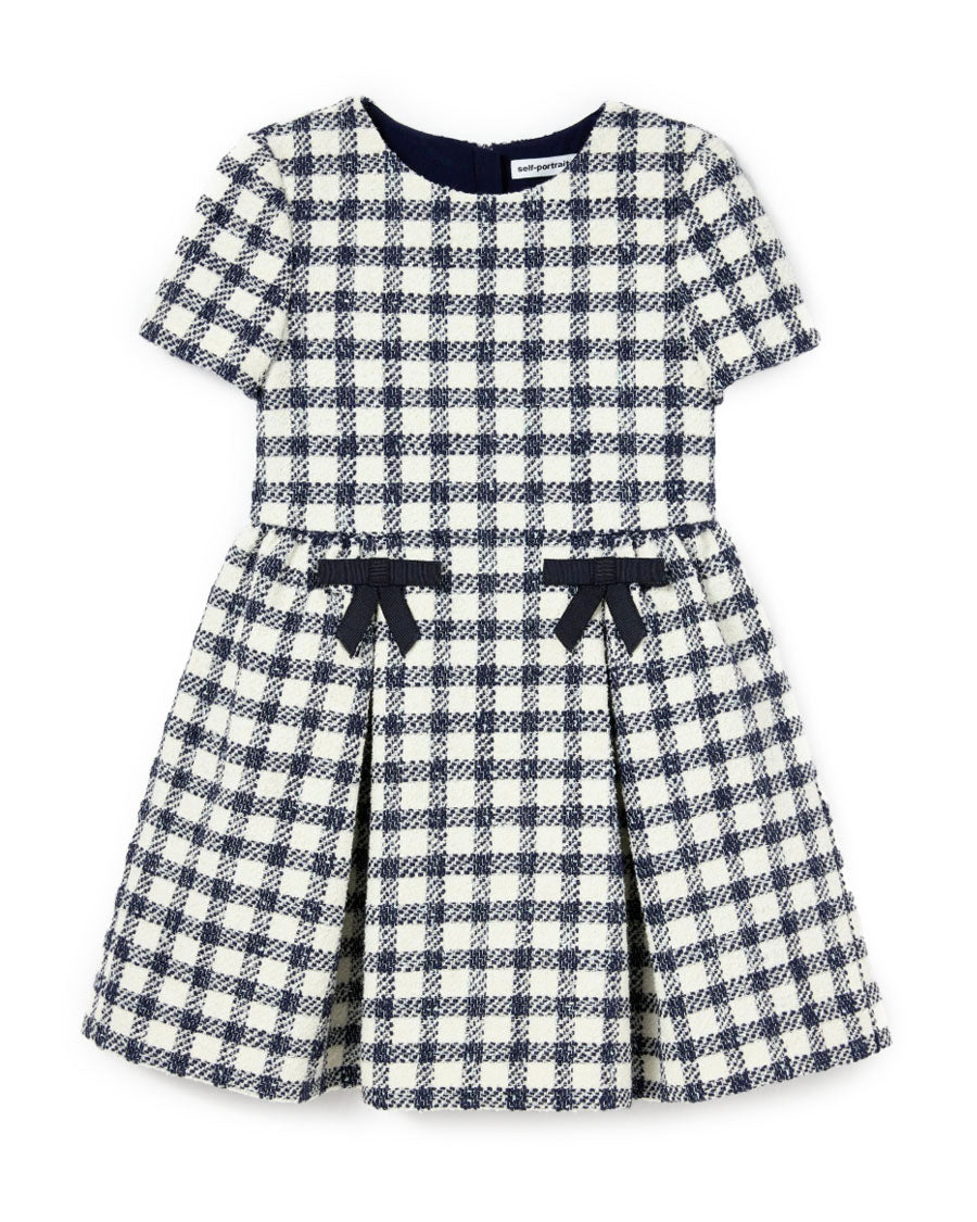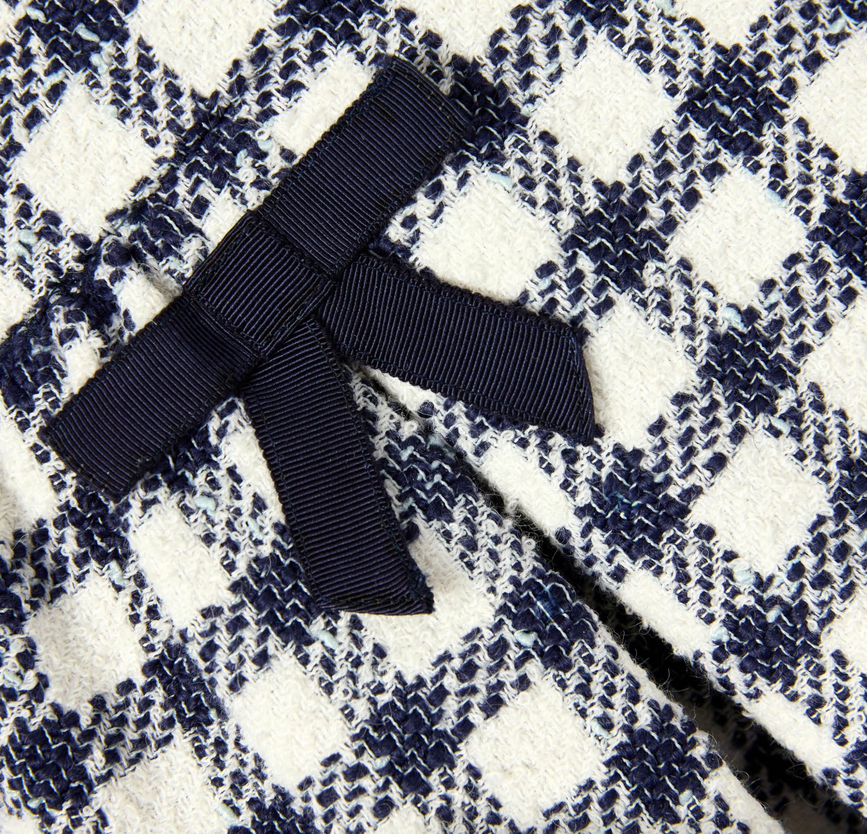 Preppy and polished, dainty ribbon bows add extra adorable detail to this navy check bouclé dress. Show off its full skirt with Mary Janes and add our bedazzled headband for a trip to the theatre.