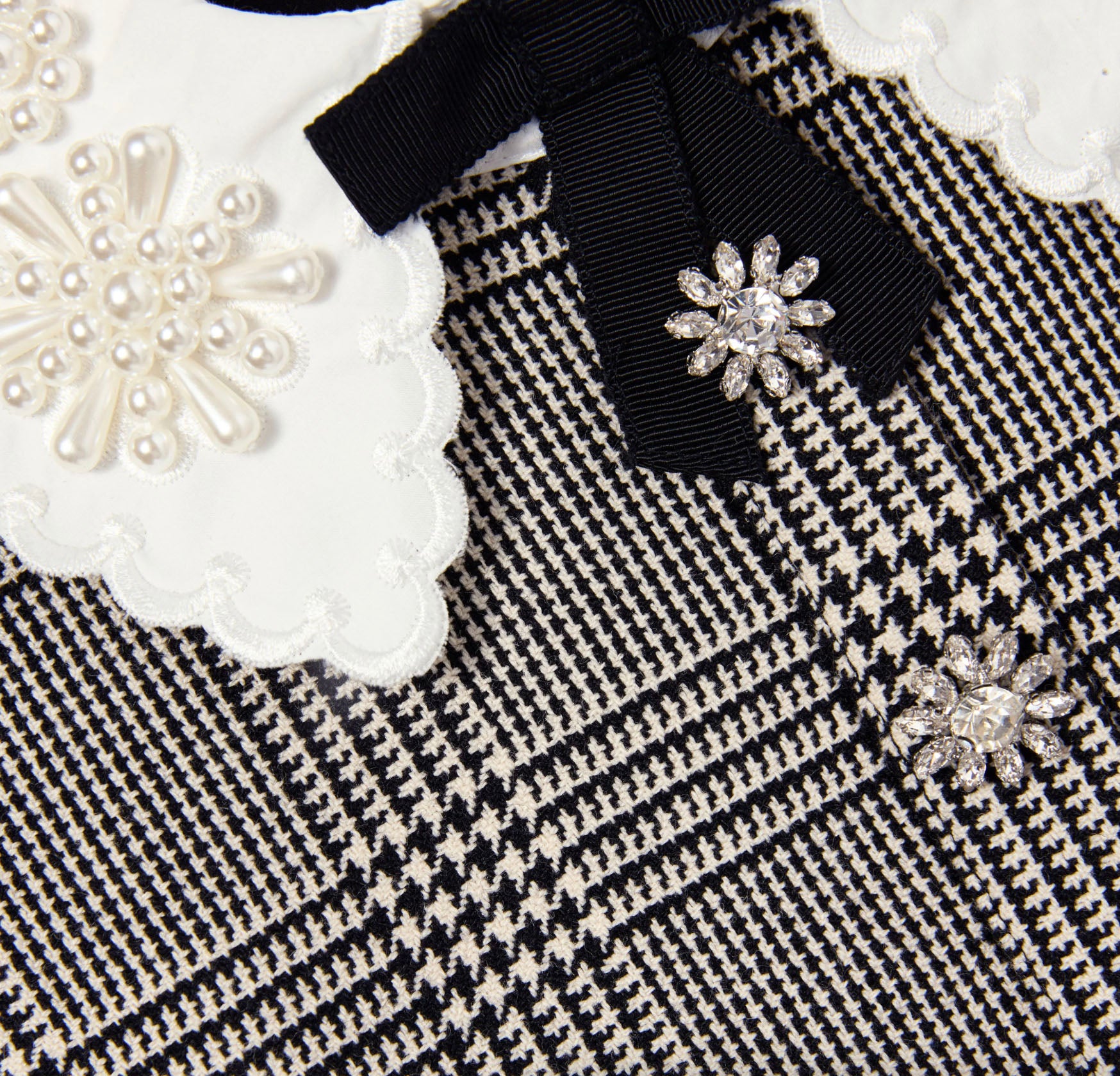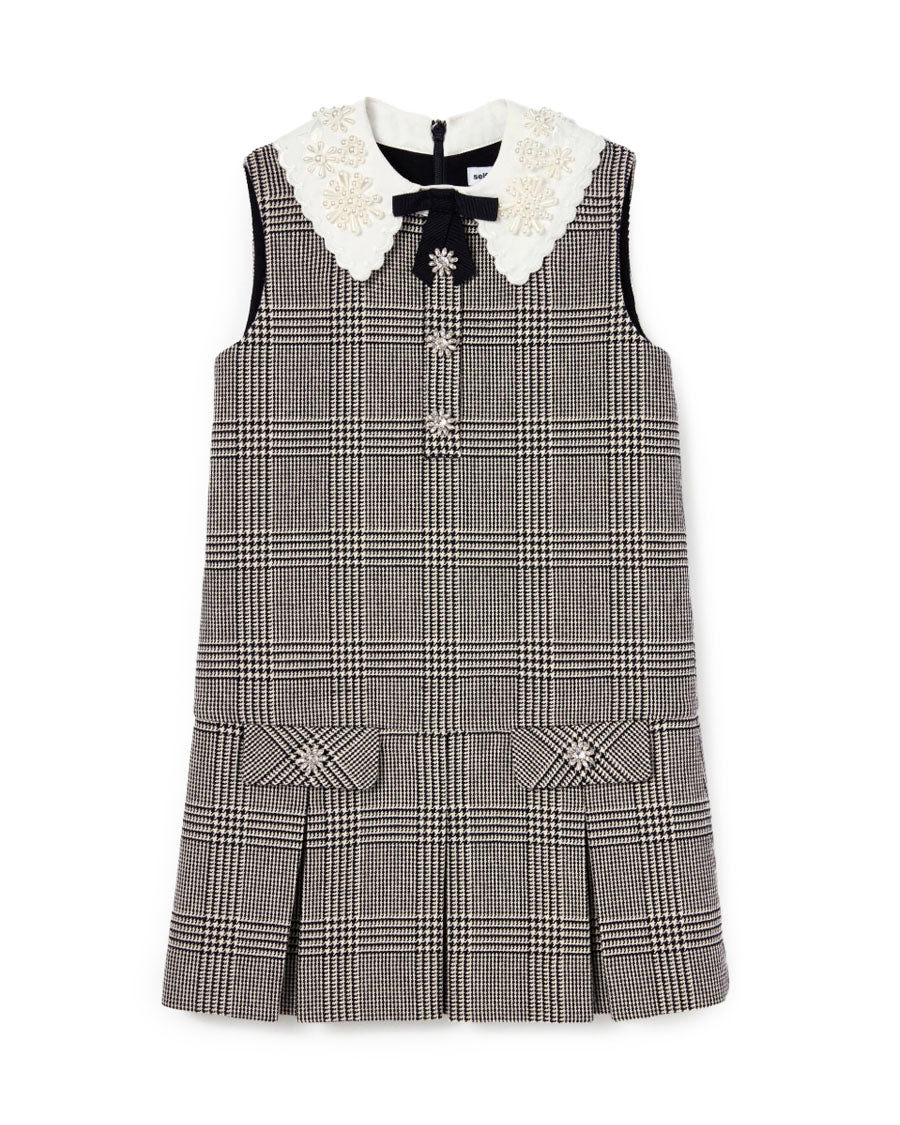 Diamanté buttons, bow motifs and a pearl-topped lace collar – this herringbone check dress really has it all. Style with a pair of Mary Janes and our embellished headband for extra flair.