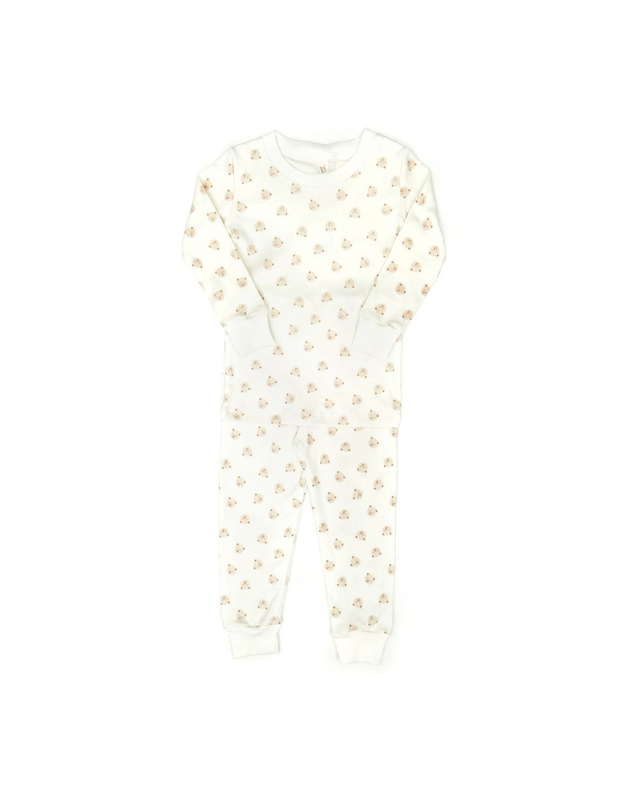 Two piece pajama set, made of 100% Pima cotton, designed to care for your little one’s delicate skin while they sleep. Its ultra soft texture and charming bear print on a pearl background make it the perfect choice for peaceful nights.