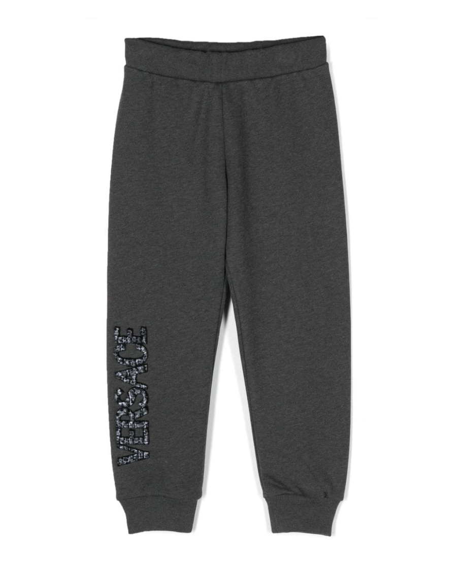 These track pants from Versace Kids are crafted from soft grey cotton with an elasticated waistband and ribbed cuffs. They're detailed with a logo appliqué at one leg for a distinct stamp of identity.