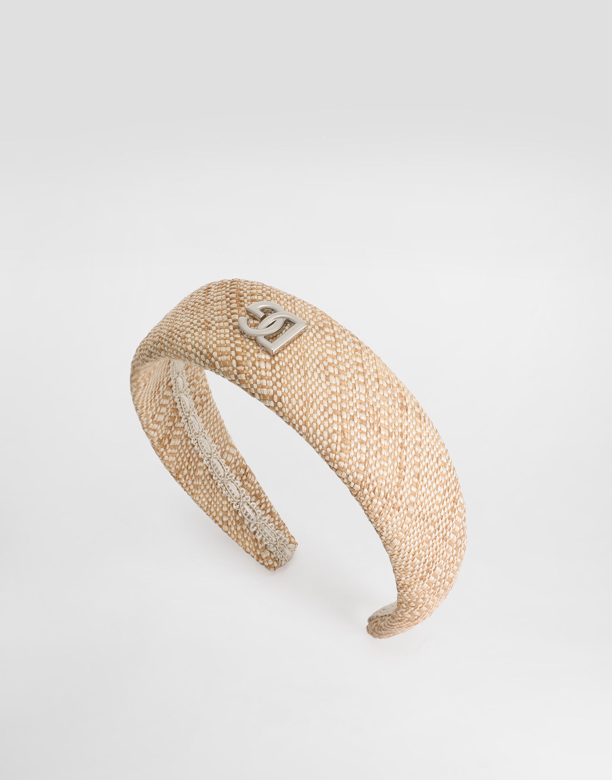 This rounded raffia canvas headband is the perfect accessory to add a touch of elegance and originality to the look of the little ones. With the DG logo in metal, it is a piece that combines style and functionality.