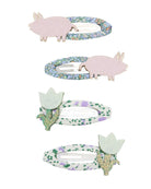 Farmyard fans will squeal with delight at this adorable little piggy pack! Two sparkly pink piglets and two sweet tulips, the perfect pack of hair clips for a fun, farm-theme style!