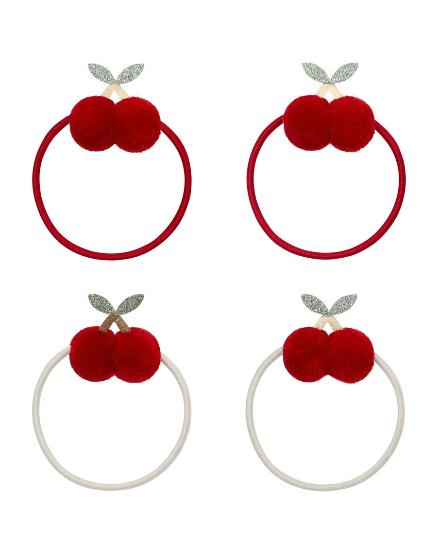 Add a fun and fruity twist to their hair with these adorable cherry ponies, each finished with a pair of super soft, bright red pom pom cherries for a bright pop of cheerful charm!