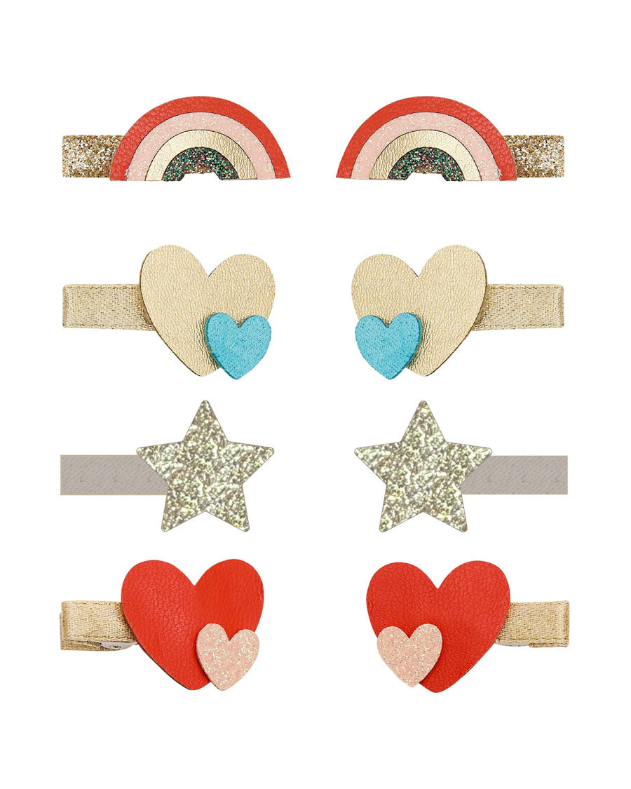Make every day a good hair day with our adorable new Rainbow mini clips! With four fabulous pairs to choose from, they can mix and match to their heart's content!