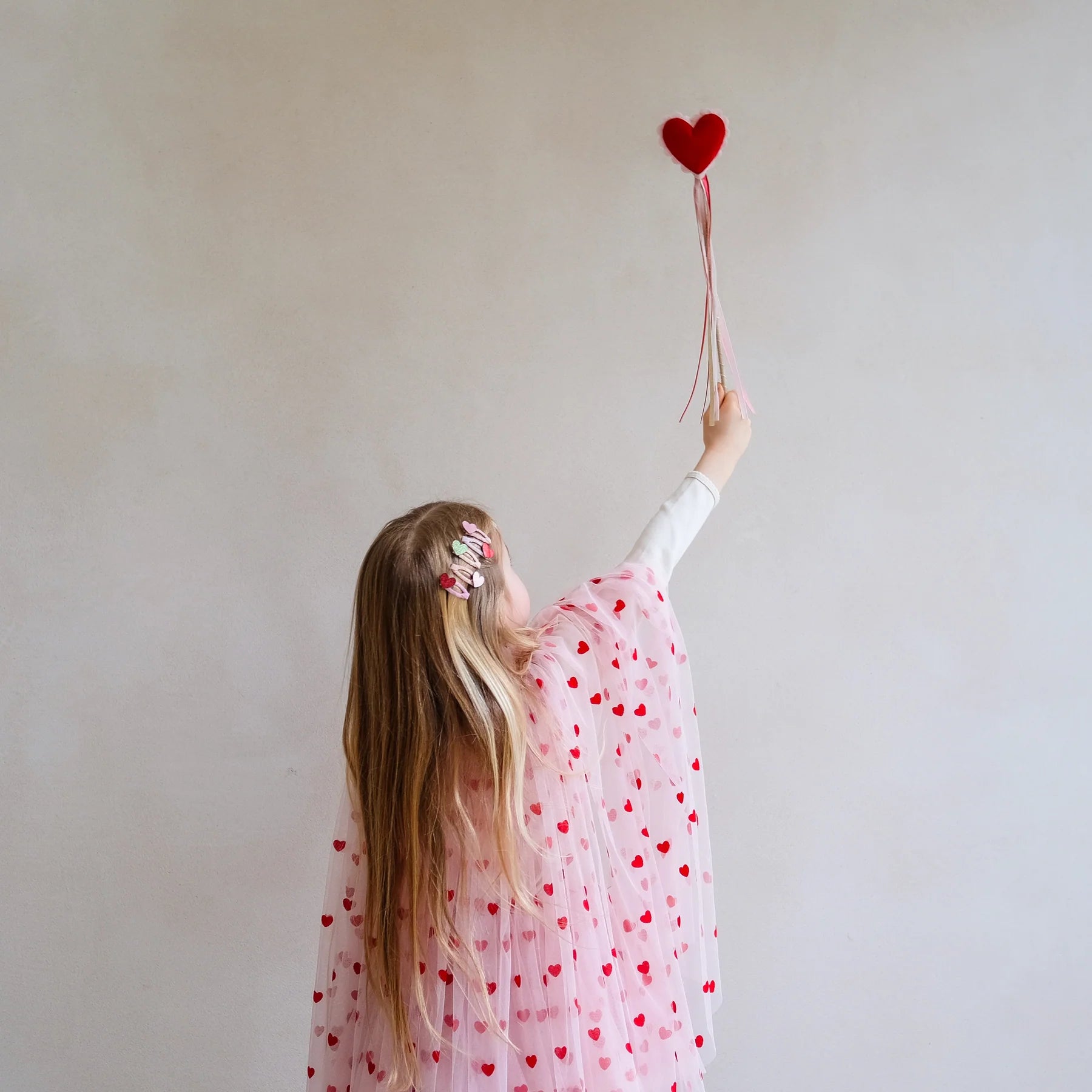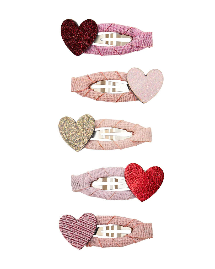 Five pretty pink ribbon wrapped mini clic clacs topped with tiny little hearts. Perfect for adding a little love to every hairstyle!