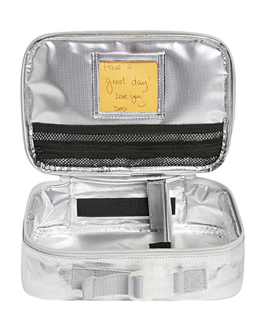 Keep their lunch fresh and organized with a fully insulated main compartment featuring a detachable divider, a zippered mesh pocket for silverware or an ice pack, and see-through pocket adds for notes or pictures. Fits perfectly inside the Kane Backpack for easy carrying.