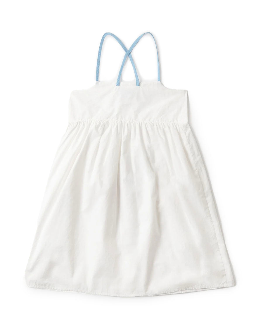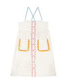 Crafted from organic cotton, this jumper dress is defined by its clean white finish and practical pocket detailing. The structured silhouette is balanced by adjustable shoulder straps, offering comfort and ease for everyday wear. Rooted in the collection’s playful take on utility dressing, the piece brings a thoughtful, functional edge to Spring Summer 2026 while remaining light and versatile.