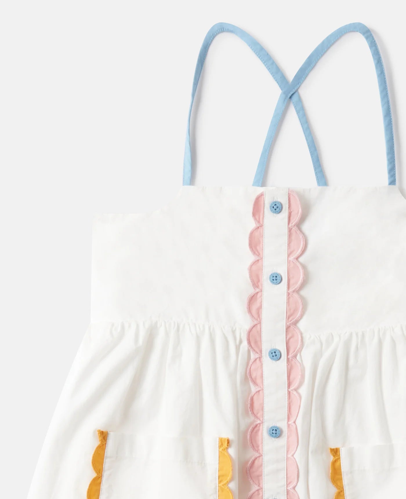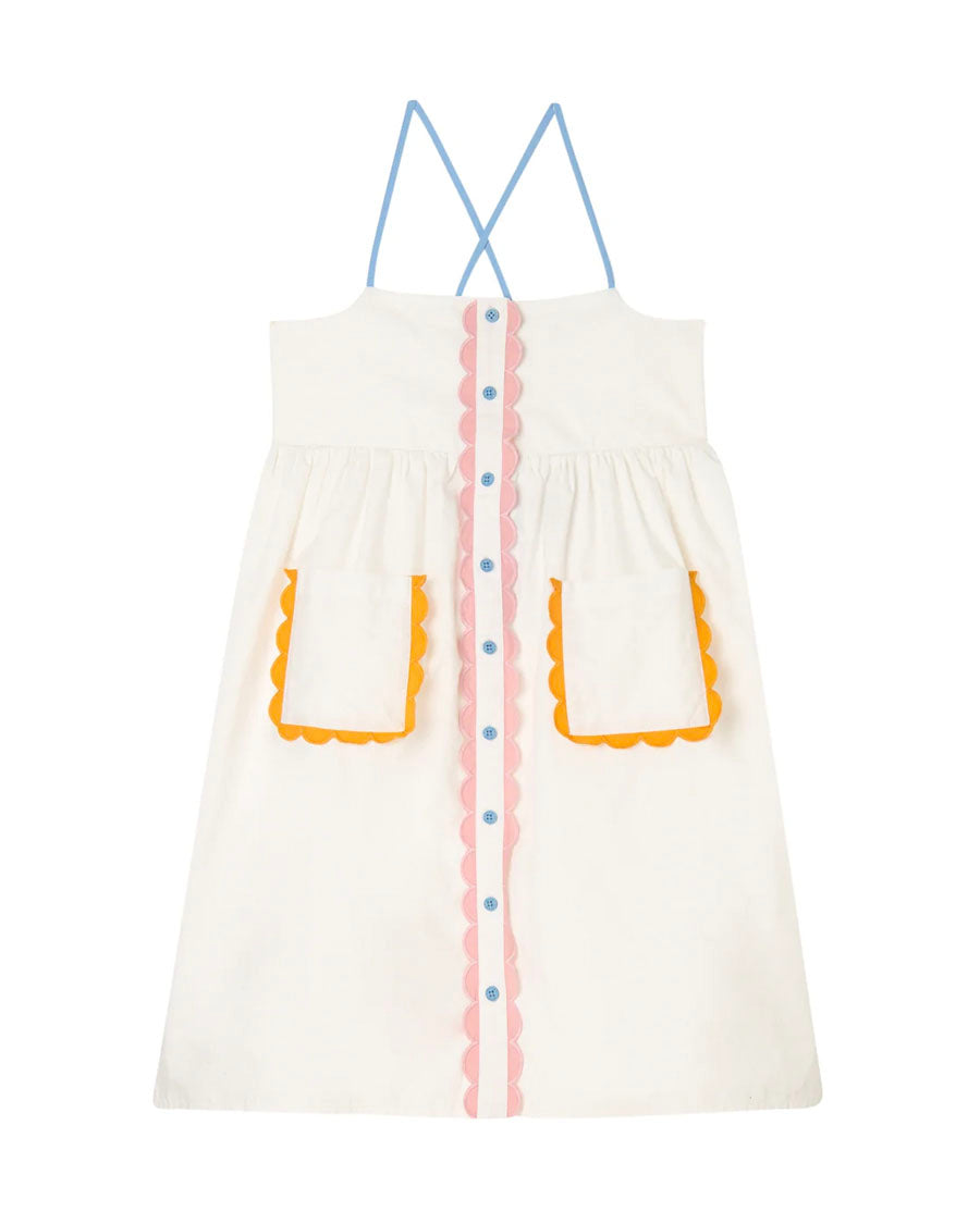 Strappy Dress w/ Scalloped Details - White