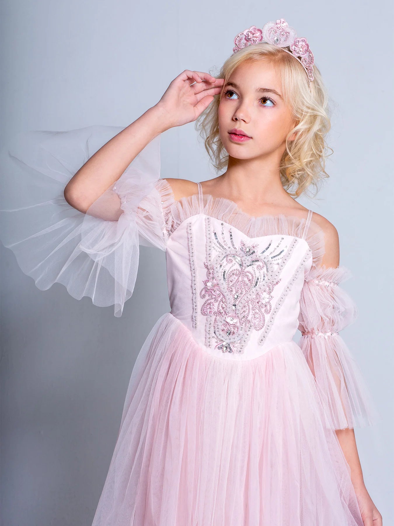"She shall go to the ball!" with the Princess Rose Tiara! Whether she's waltzing around her bedroom in a magical game of make believe, or she's playing at a party or in the park, this stunning headpiece adorned with delicate twinkling flower motifs will make her feel super special, every time she wears it. Pair it with the Princess Rose Tutu Dress, and she she'll be the fairest of them all!