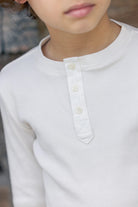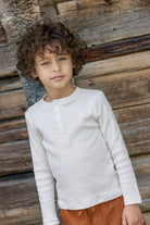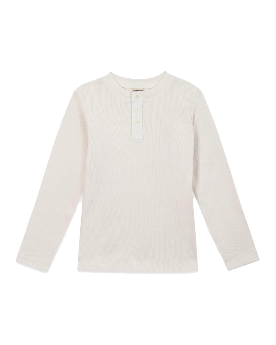 This Gouette in Écru Bonton t-shirt from the "Winter Tales" collection is a must for small winter adventures. With its long sleeves and its Collar three Button Pressure, it is ready to face the cold days in style! Made in KnitwearRibbedE 100% cotton, it provides comfort and heat. Perfect for being associated with a cozy jacket or Trousers in Velvet, It is ideal for exploring a magical world while staying warm!