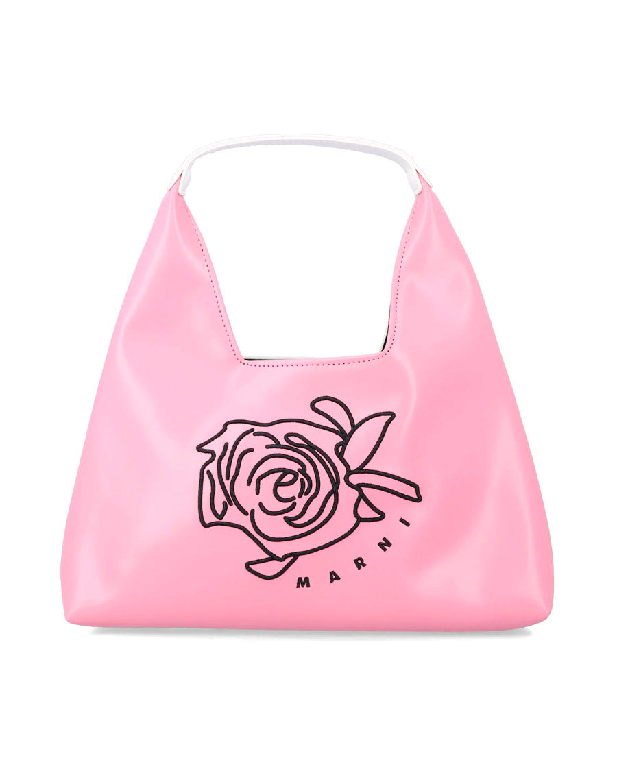 Diamond shoulder bag with logo and embroidered floral pattern. A modern design created to add a distinctive touch to any outfit.