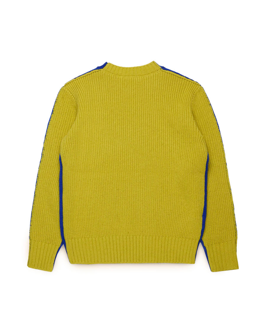 Half-and-Half Wool-Nylon Sweater - Blue/Yellow