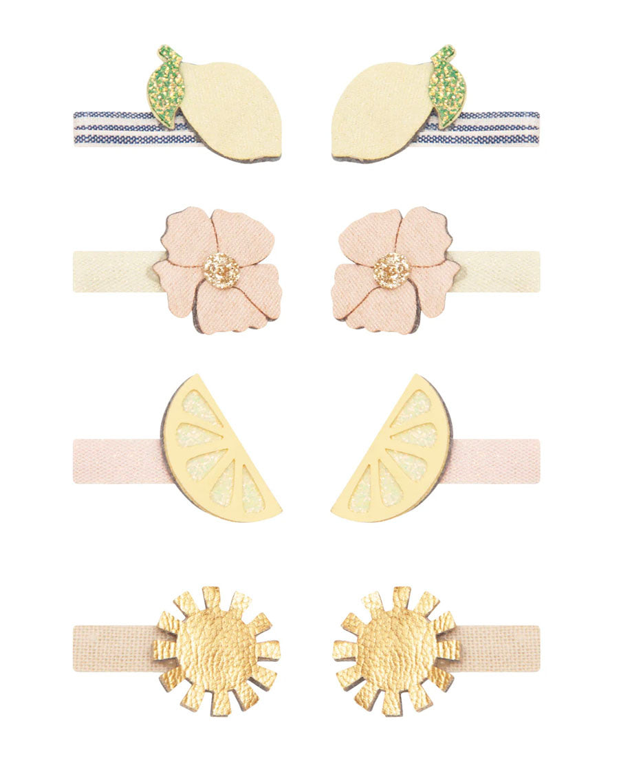Capri in a clip. This 8-pack of Amalfi Mini Clips features the cutest Italian vacay-inspired appliques atop fabric-coated clips to keep your little ones hair out of the way all day long without pinching or tugging.