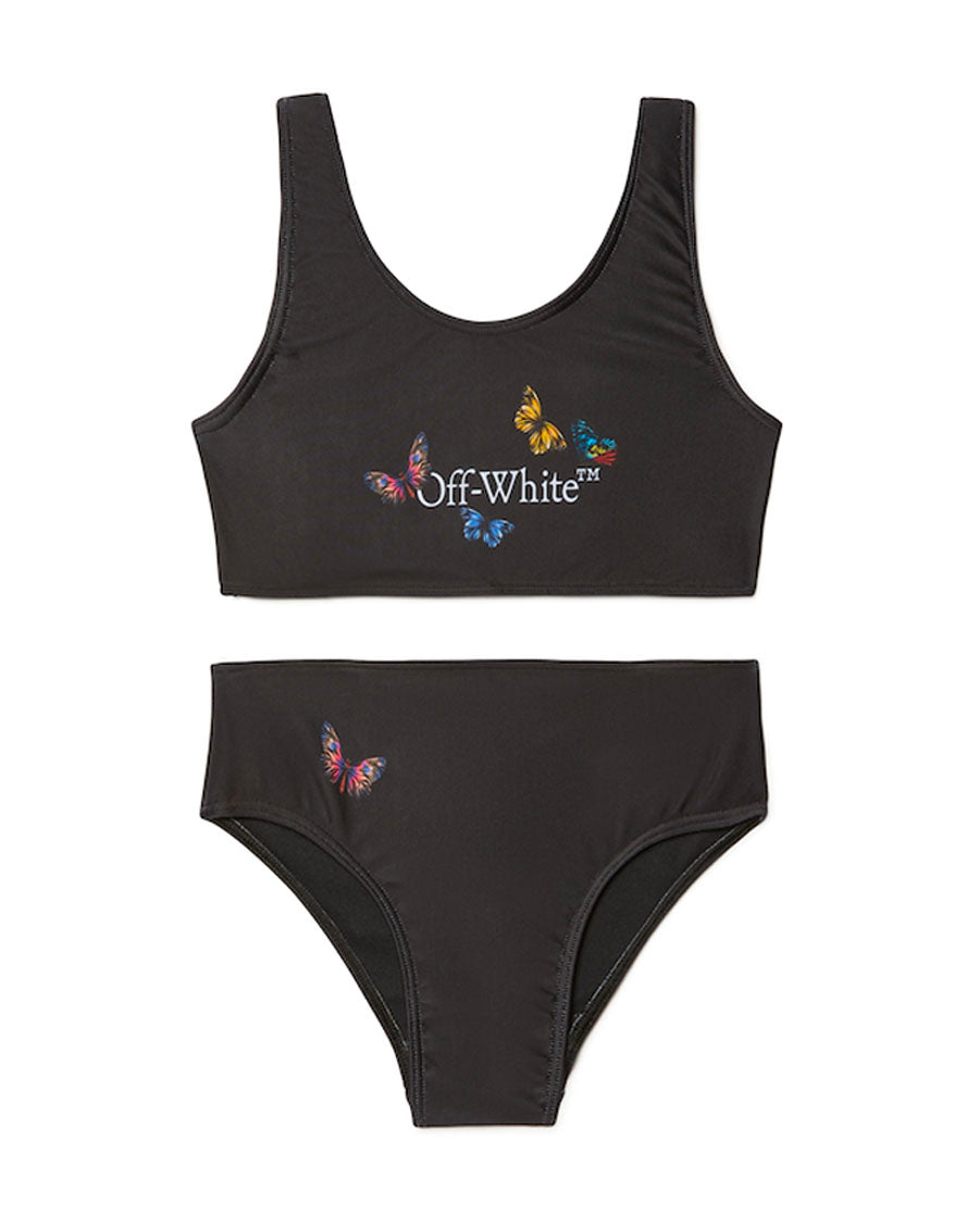 This bikini features a small bookish logo with butterflies. Made with elastane.