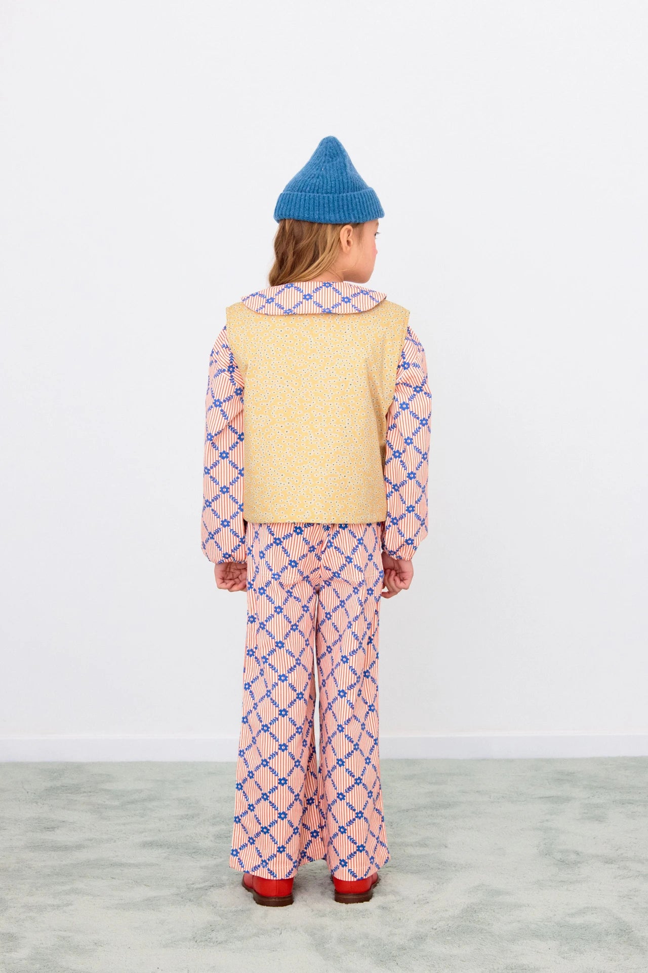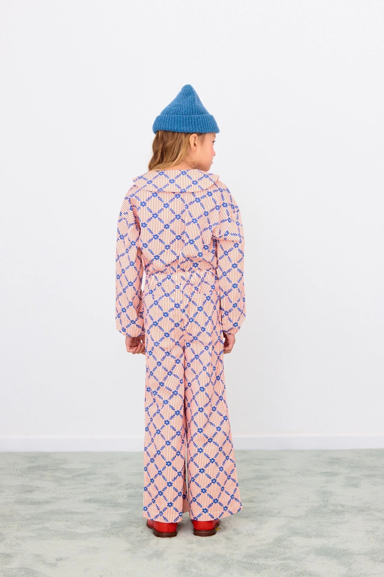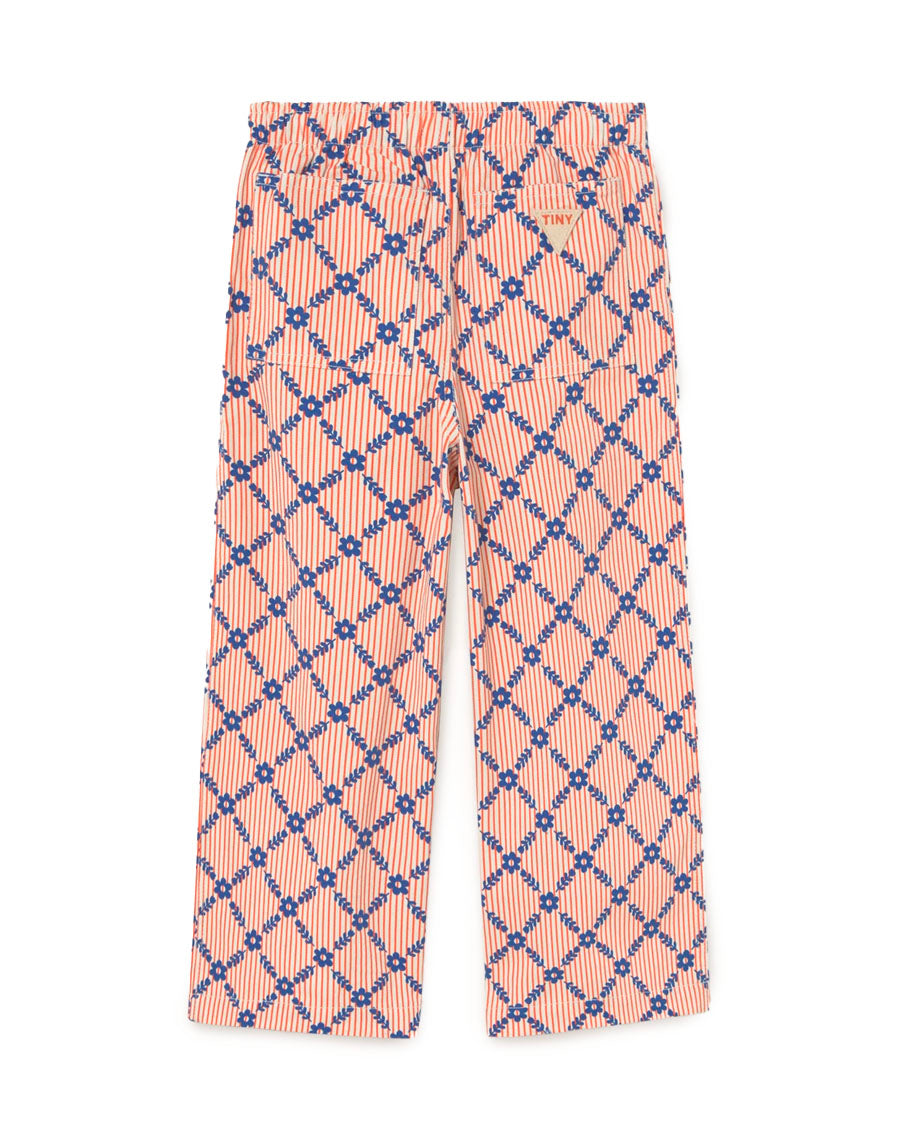 These Flower Grid print pants are the perfect blend of comfort and cool. Made from soft 100% cotton, they feature a relaxed straight-leg silhouette, an elastic waistband, and pockets. A seasonal logo patch on the back pocket adds a playful finishing touch.