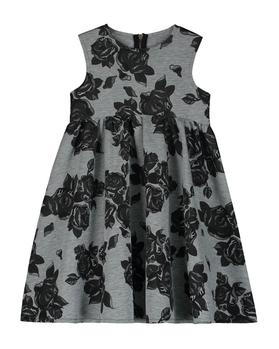 Black Flower Neoprene Dress in Grey Melange & Black color for kids.