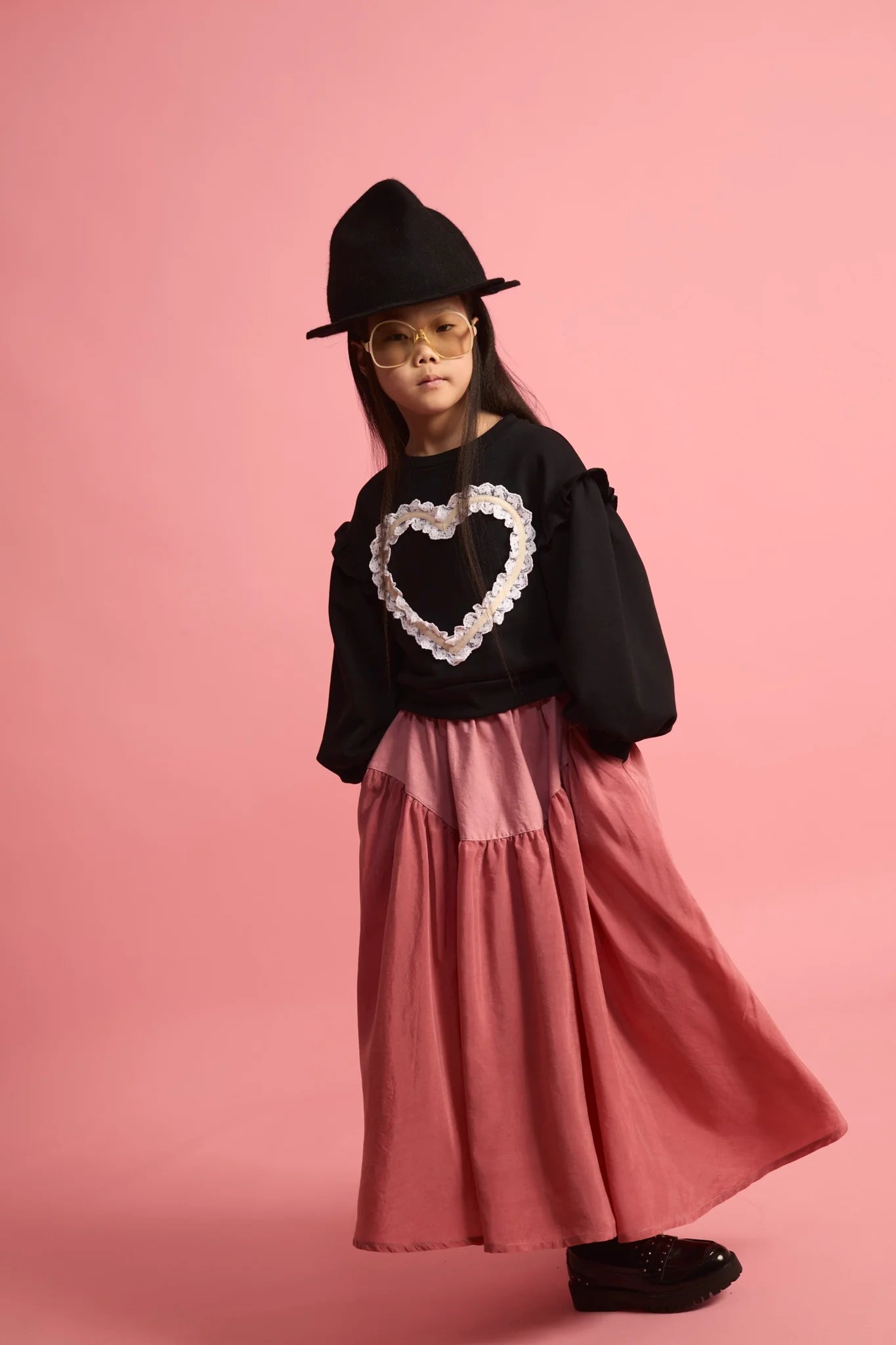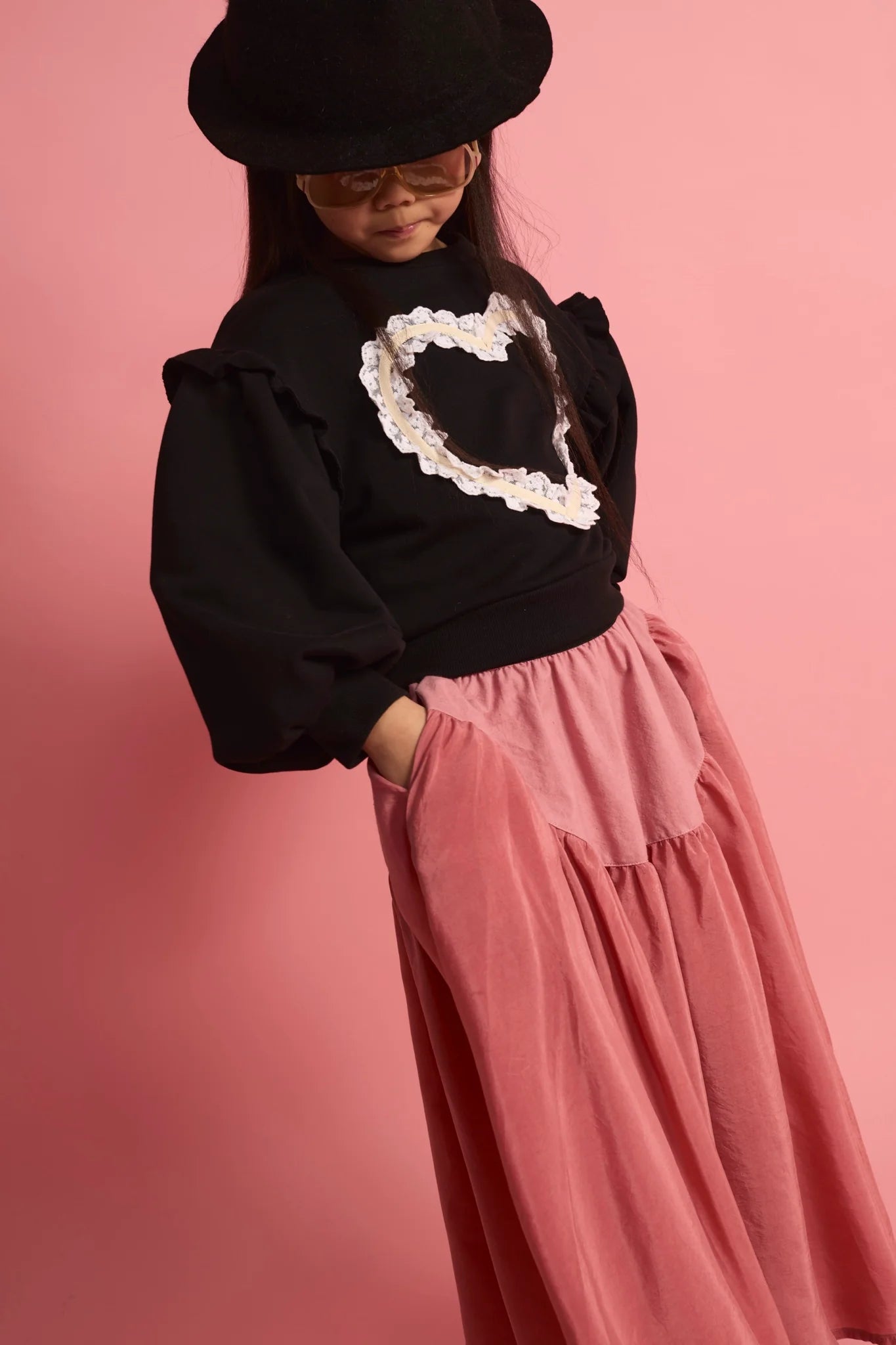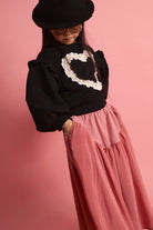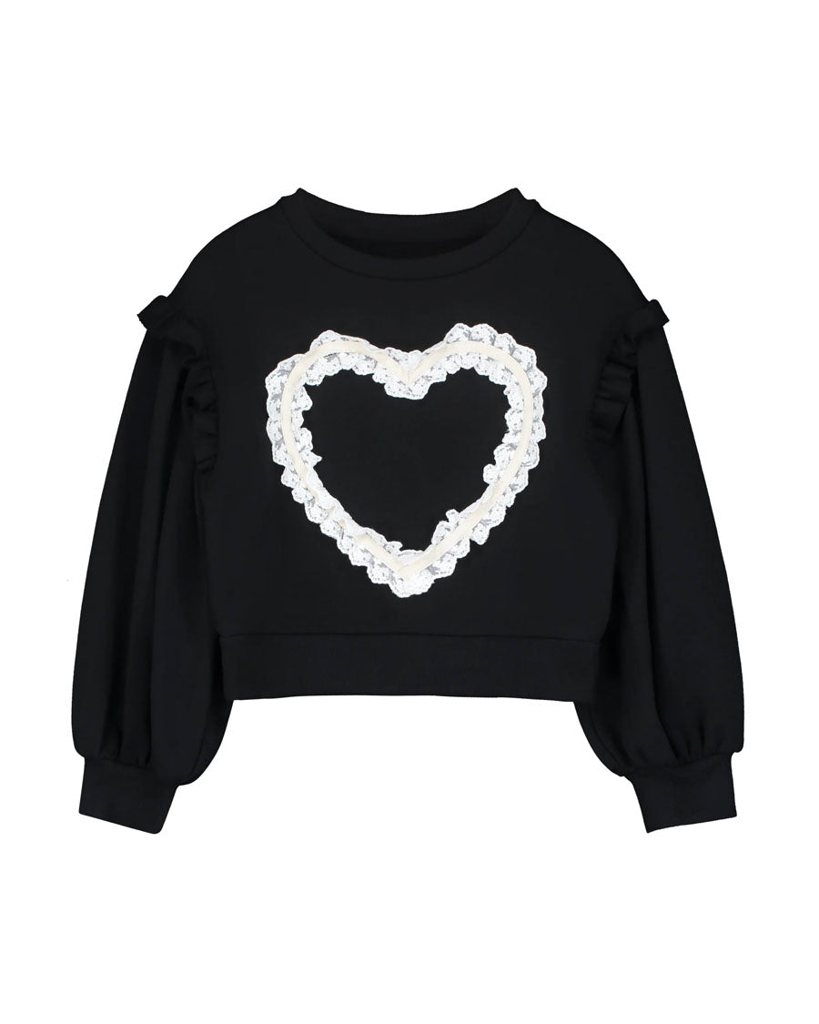 Lace Heart Sweatshirt in Black color for kids.