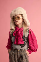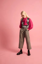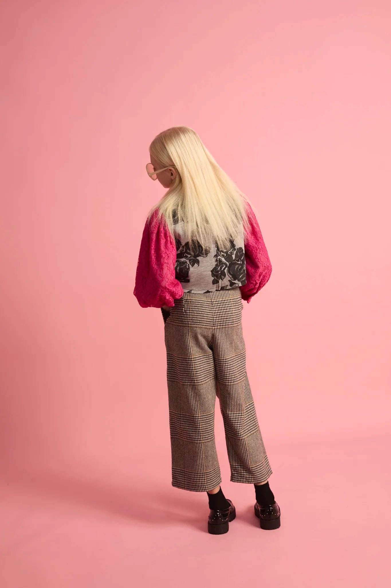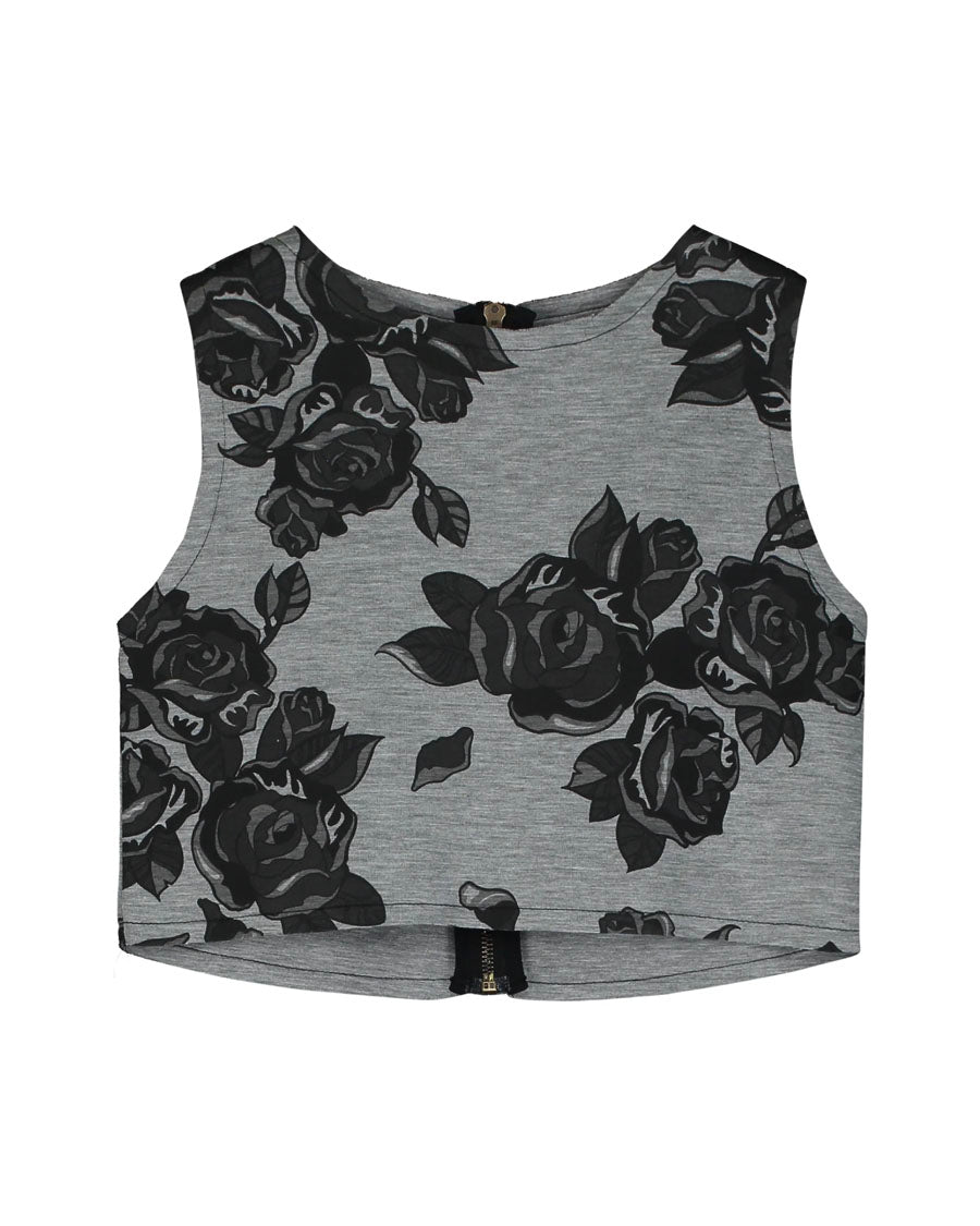 Black Flower Neoprene Top in Grey Melange & Black color for kids.