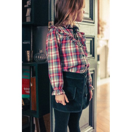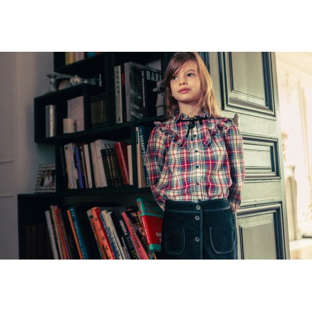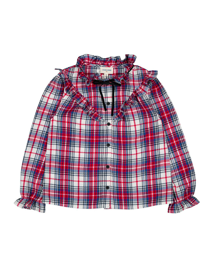 Details: Ruffled collar with tie, ruffle on the front, long sleeves, elasticated cuffs.
