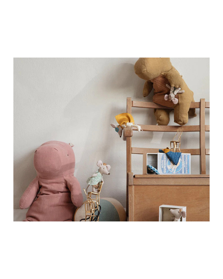 Maileg is a Danish design brand of children’s toys established in 1999 by Dorthe & Erik Mailil. Their philosophy is creating a well-made, adorable toy that will last forever. Their belief is that children thrive with simpler toys rather than plastic. Fewer, better made toys open their minds to new stories and innovative ways to play which will serve them well thru life.
