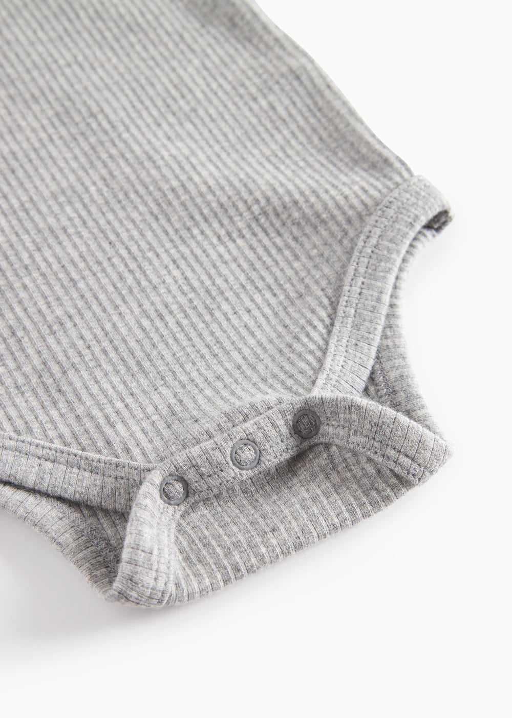 Plain Longsleeve Bodysuit - Light Grey Melange