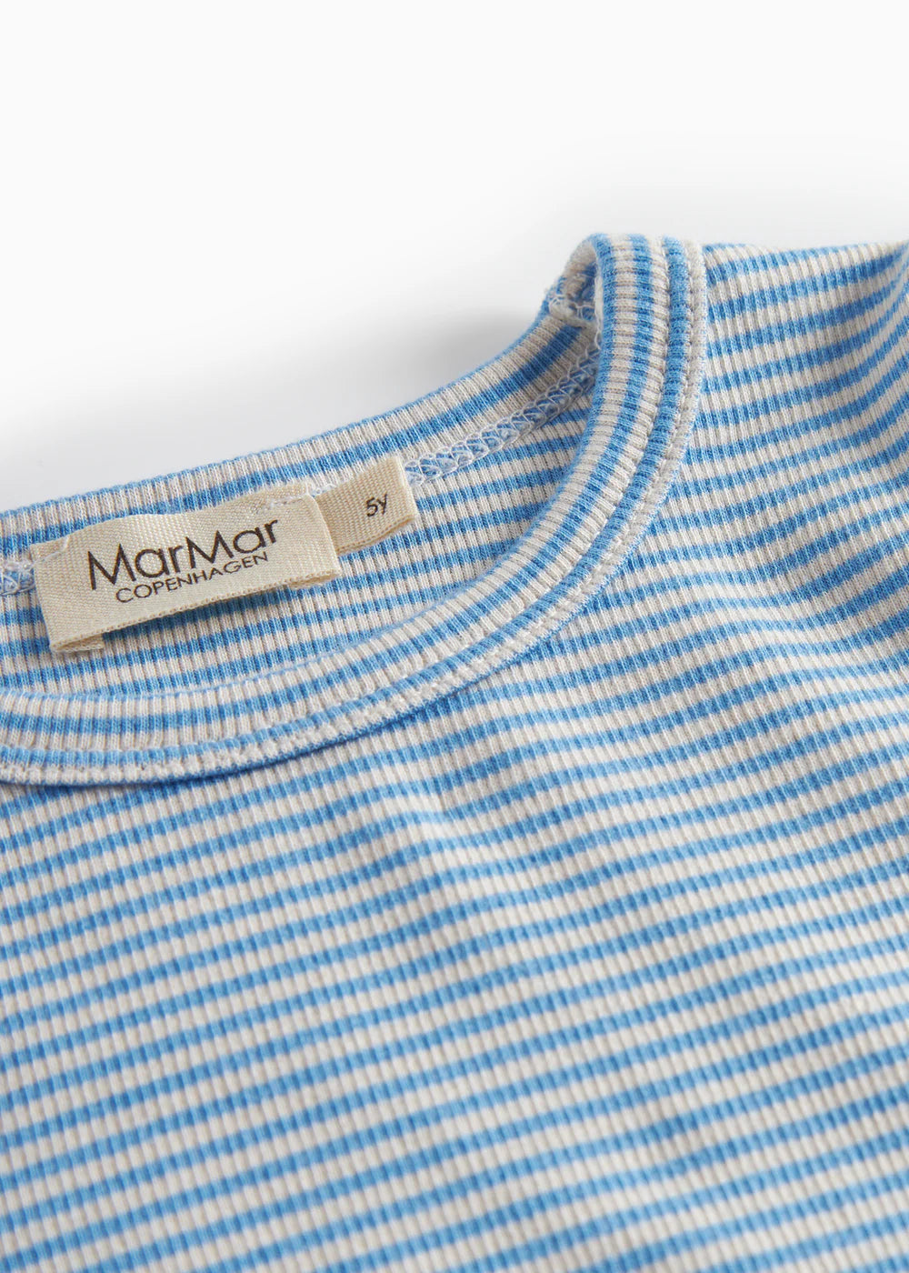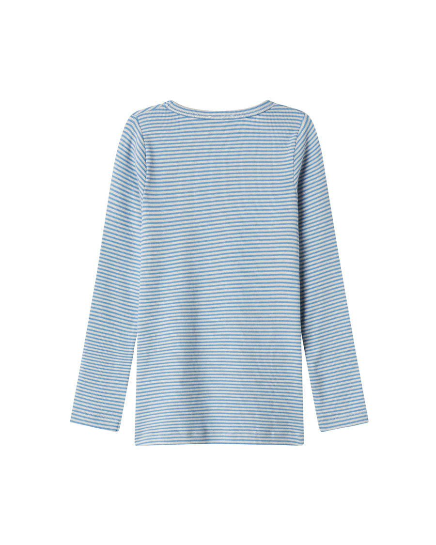 Simple long-sleeved t-shirt for children with fine stripes. The t-shirt is soft, holds its shape and color and has elastane in it, which makes it stretchy and comfortable to wear.