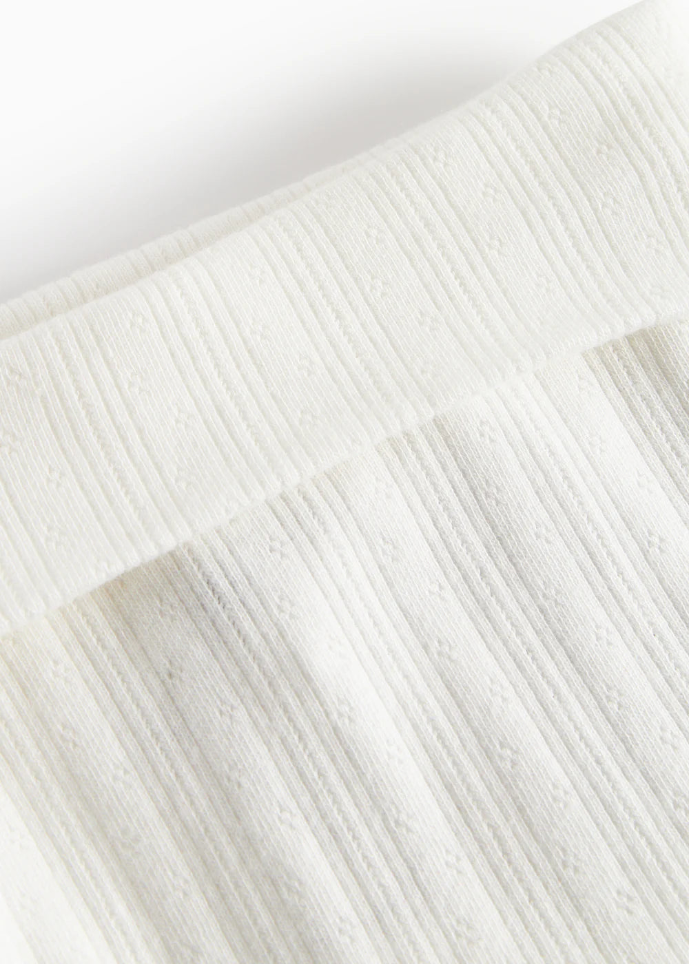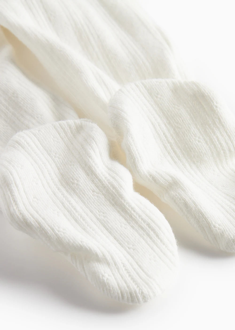 Comfortable pointelle pants with feet for newborns. The pants are soft, stretchy and comfortable to wear.