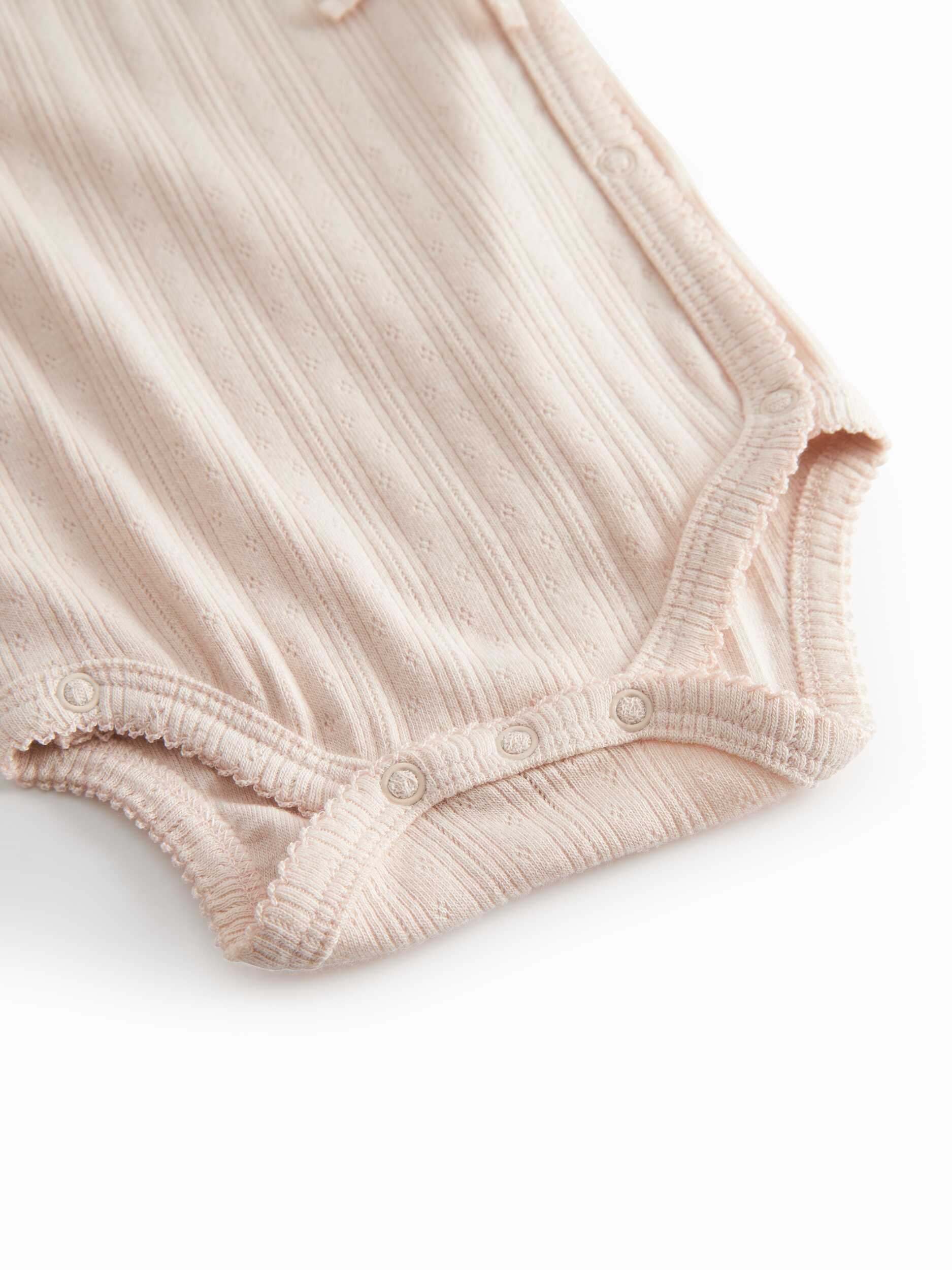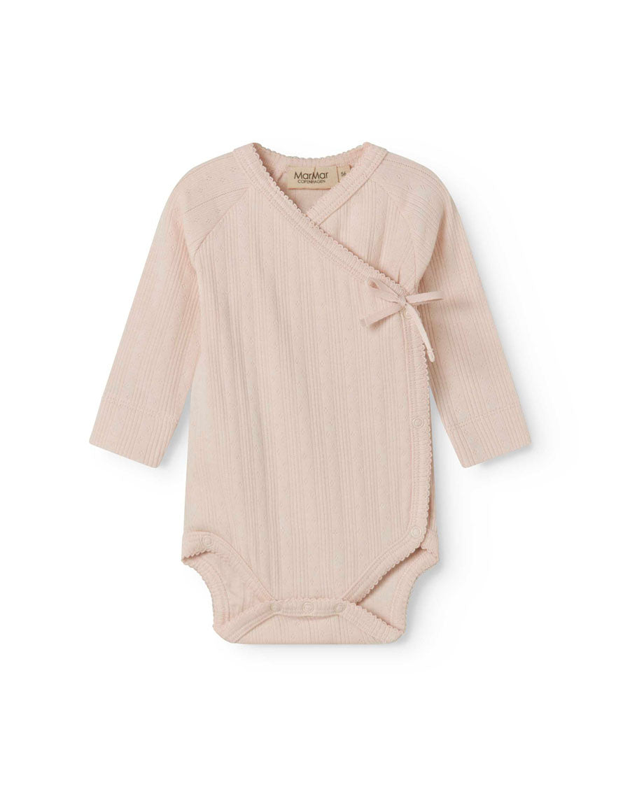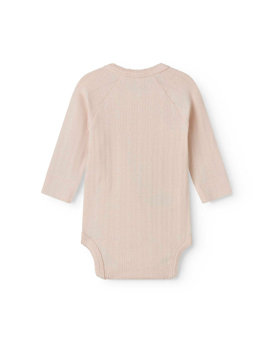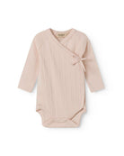 Long-sleeved bodystocking for newborns with wrap-around closure.