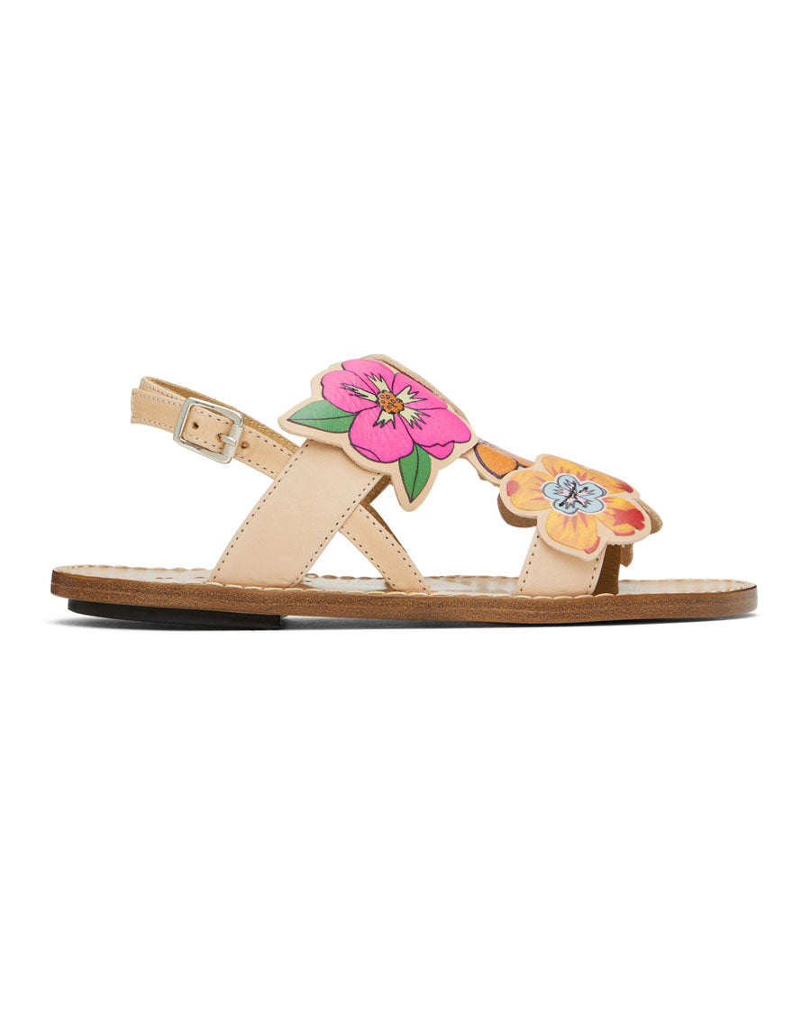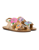 Sandals w/ Flowers - Brown
