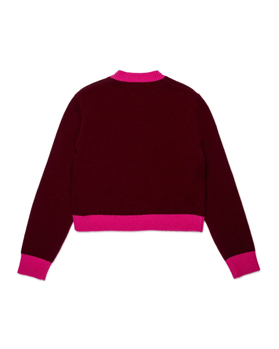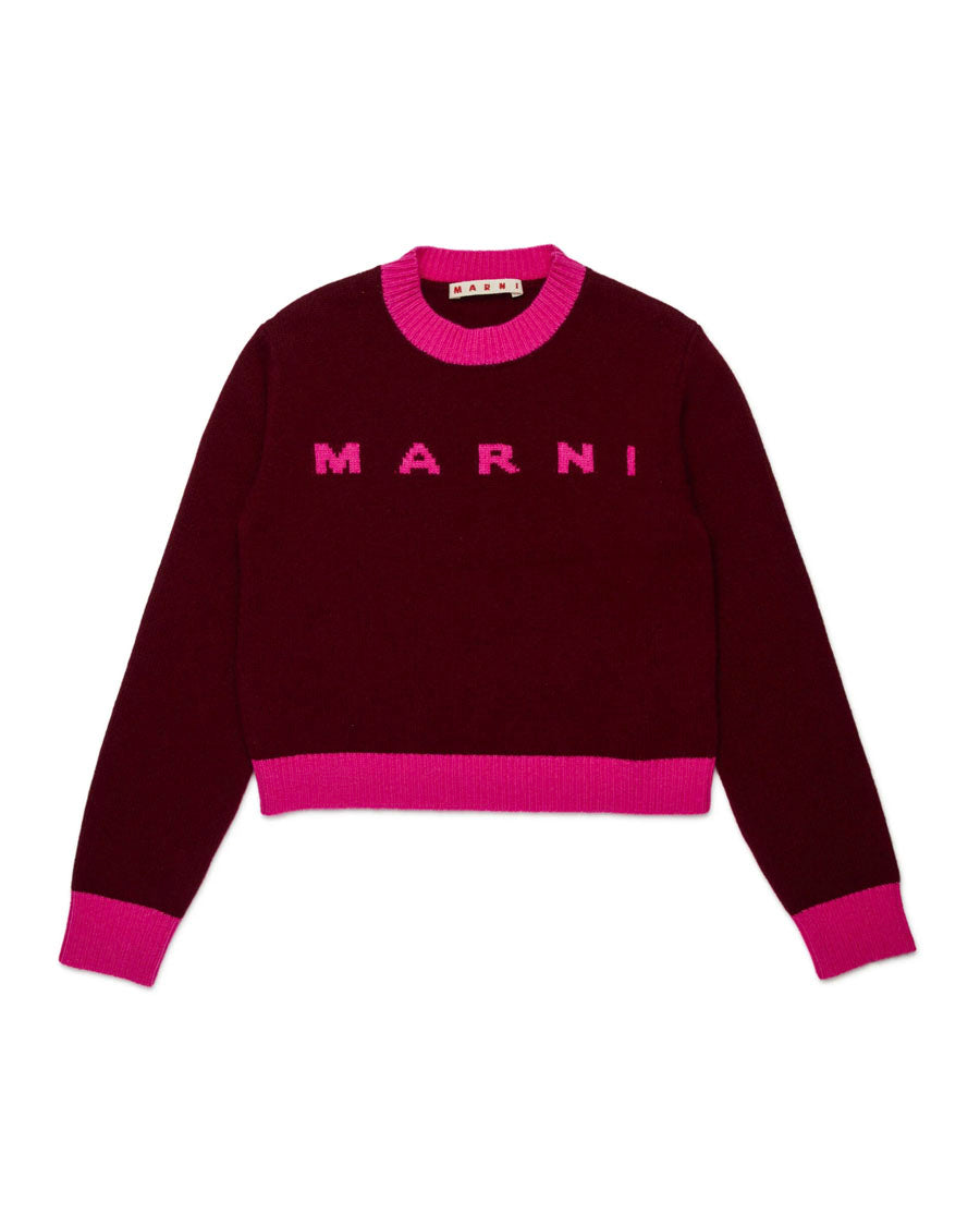 Crew-neck, long-sleeved, wool-blend cashmere sweater with ribbed colorblock cuffs, hem and collar. Features a contrasting Marni Institutional logo on the front.A stylish touch suitable for the most special occasions.