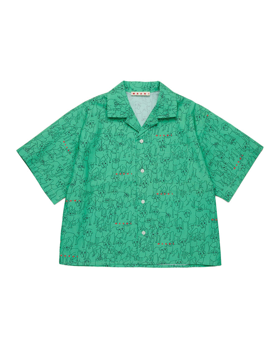 Short-sleeved bowling shirt in poplin with all-over Joy print. Front button closure.