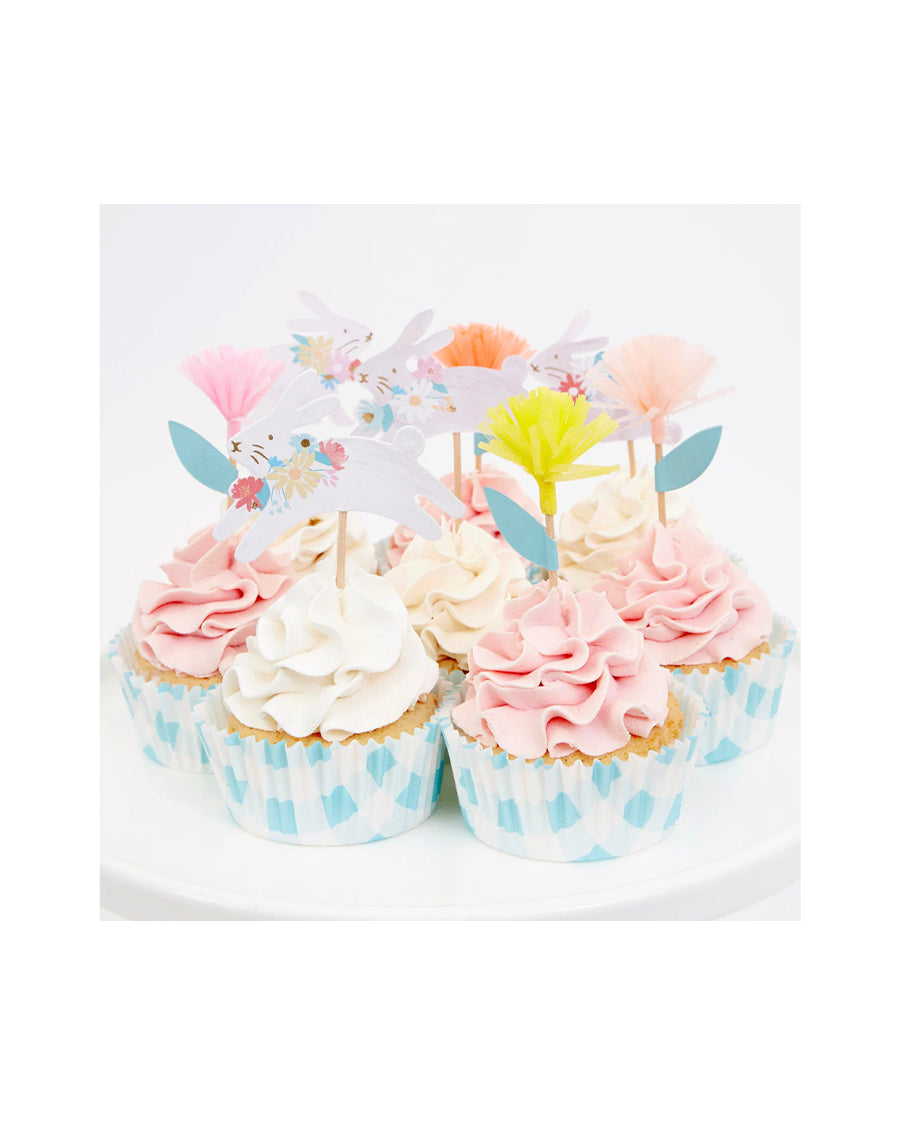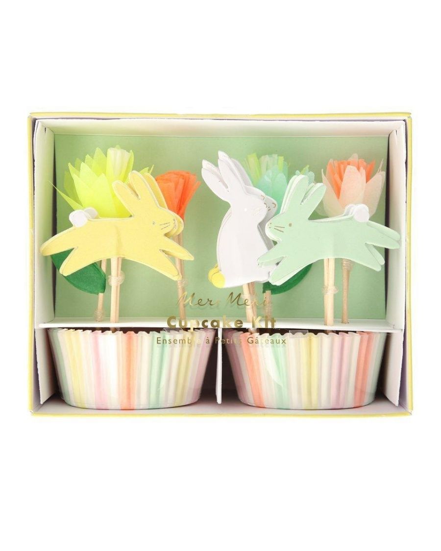 This Spring Bunny cupcake kit is perfect for creating delicious treats for Easter or any party where you want a springtime touch. It features 24 colorful toppers, with bunnies and pretty tissue paper flowers. The 24 cases come in 2 designs of bright stripes and fabulous florals. Made by Meri Meri.