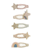 Add some mythical magic to their hair with our Celeste unicorn mini clic clacs! A super sweet unicorn, rainbow and stars come together in the prettiest palette of pastels for a look they'll love!