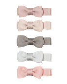 Our legendary Martha bow salon clips return in a lovely neutral dusky pink pack. Thousands of parents have been delighted to find that these little clips really work and actually manage to stay in place even in the finest of hairs!