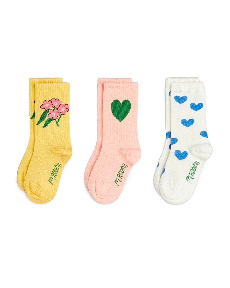 3-pack of socks made from a GOTS certified organic cotton and polyamide mix with stretch. The socks are soft to the touch, comfortably stretchy and have reinforced toe caps and heels. M.Rodini is printed under each foot.