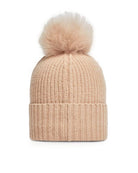 Wool Beanie w/ Shearling Pom Pom - Sand