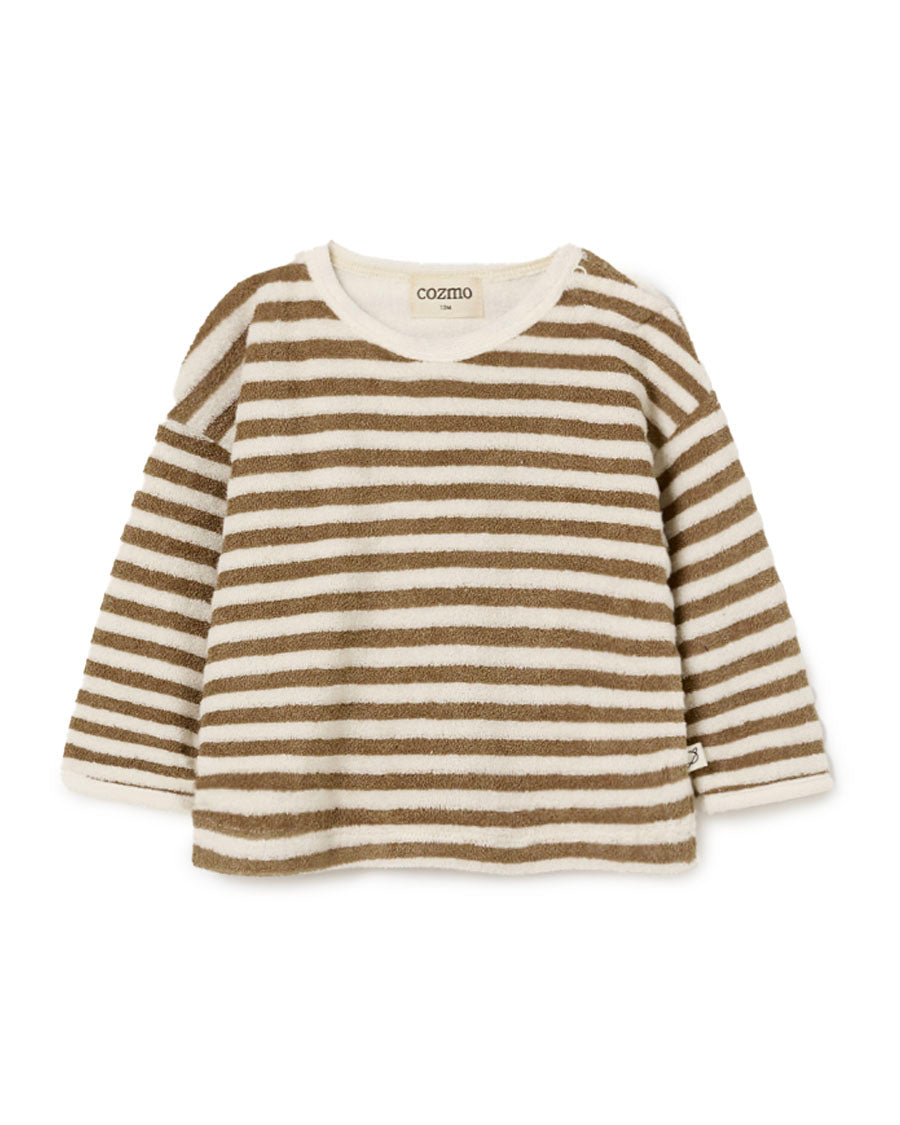 Gael Organic Striped Toweling Sweatshirt - Coffee