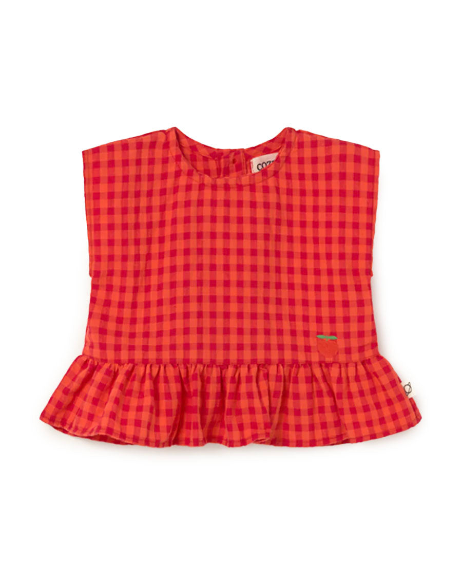 Lua Gingham Cotton Peplum Top - Tomato