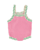 Newest favorite knit of the season - adorable Marina romper. Crafted from the softest organic cotton. Features lovely pink knit and contrasting detailing. Charming and comfortable addition to your mini’s summer wardrobe. Features mother-of-pearl buttons on the straps for an easy change.