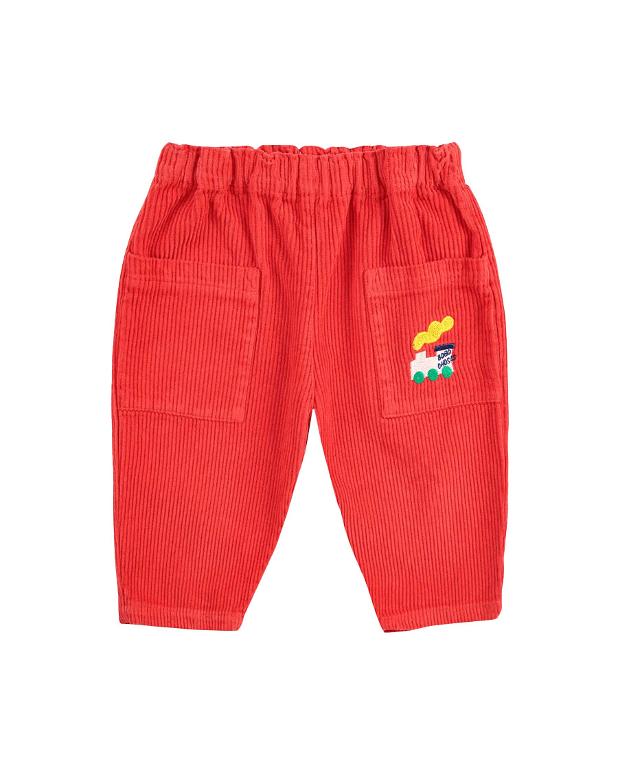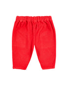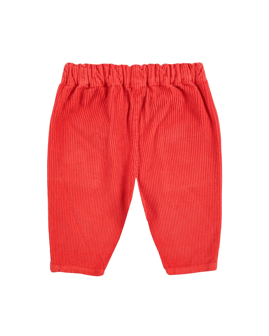 Red pants. Designed with elasticated waistband, embroidery, straight fit, long length, patch pocket and corduroy. Made in Spain.