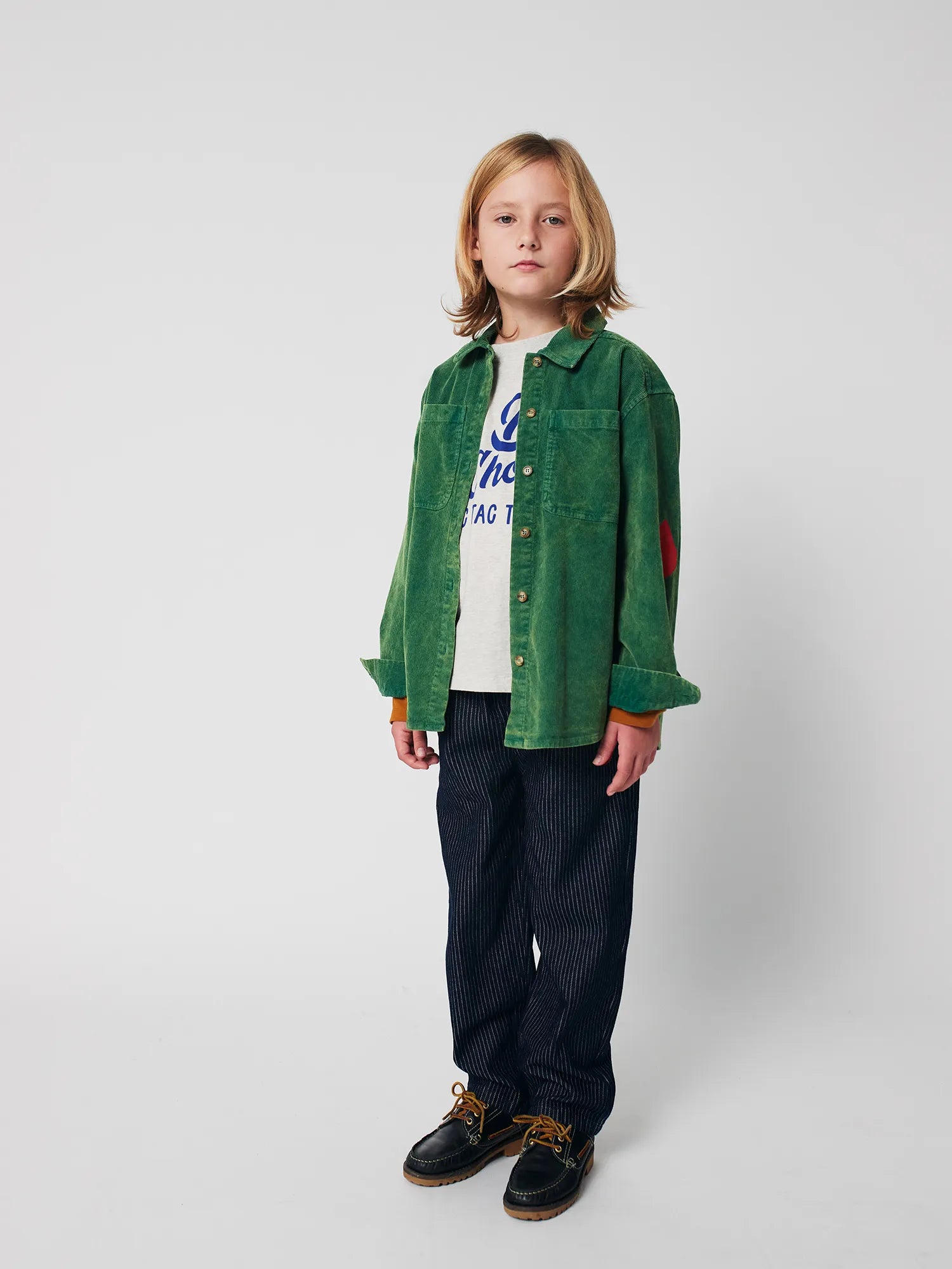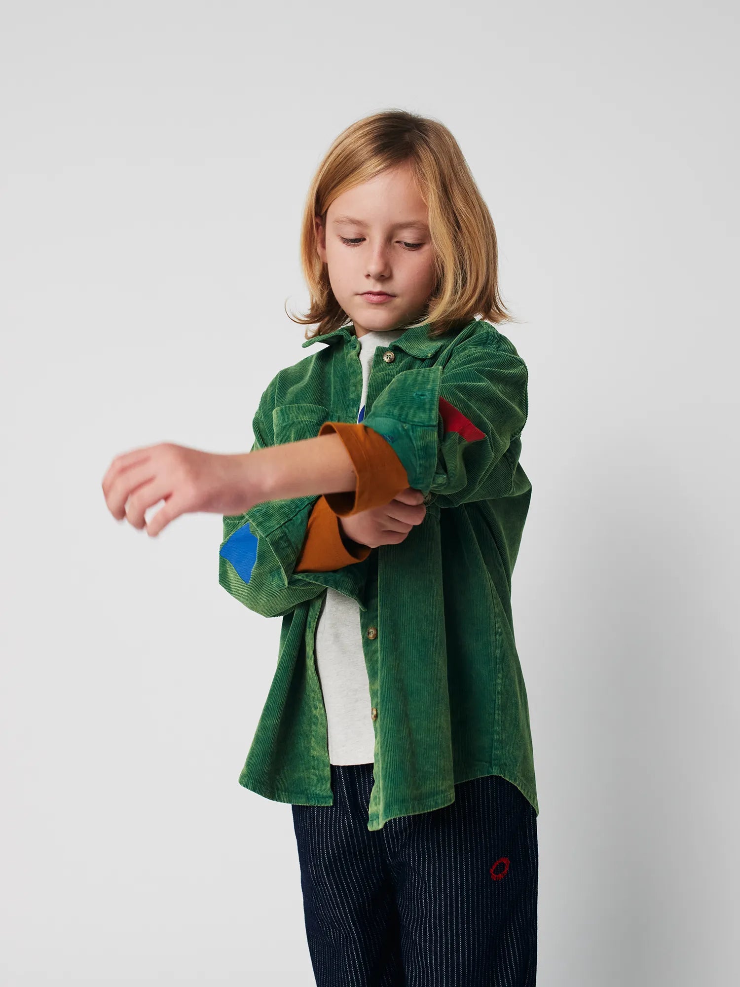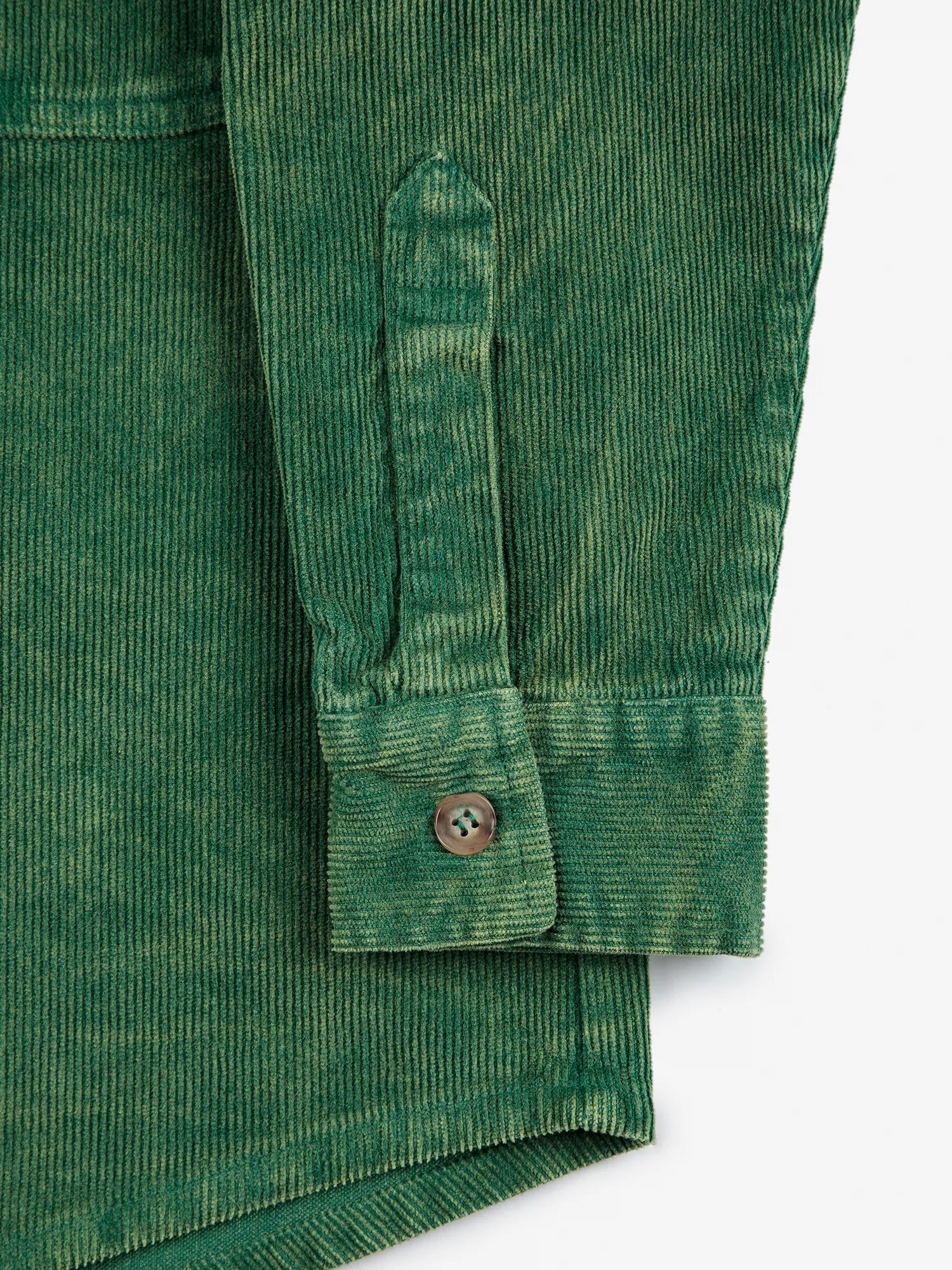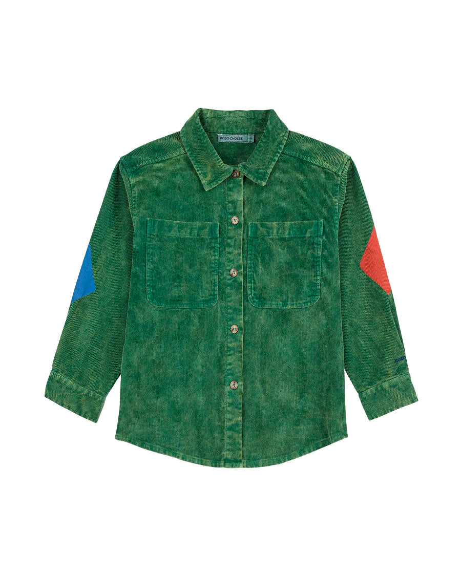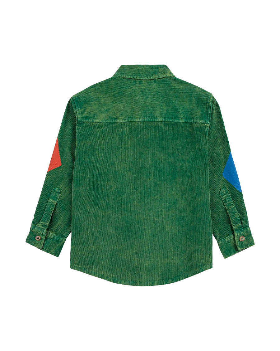 Green shirt. Designed with tailored collar, long sleeves, front button fastening, buttoned cuffs, patched chest pocket, embroidery, loose fit, shirt hem, back yoke and corduroy. Made in Spain.
