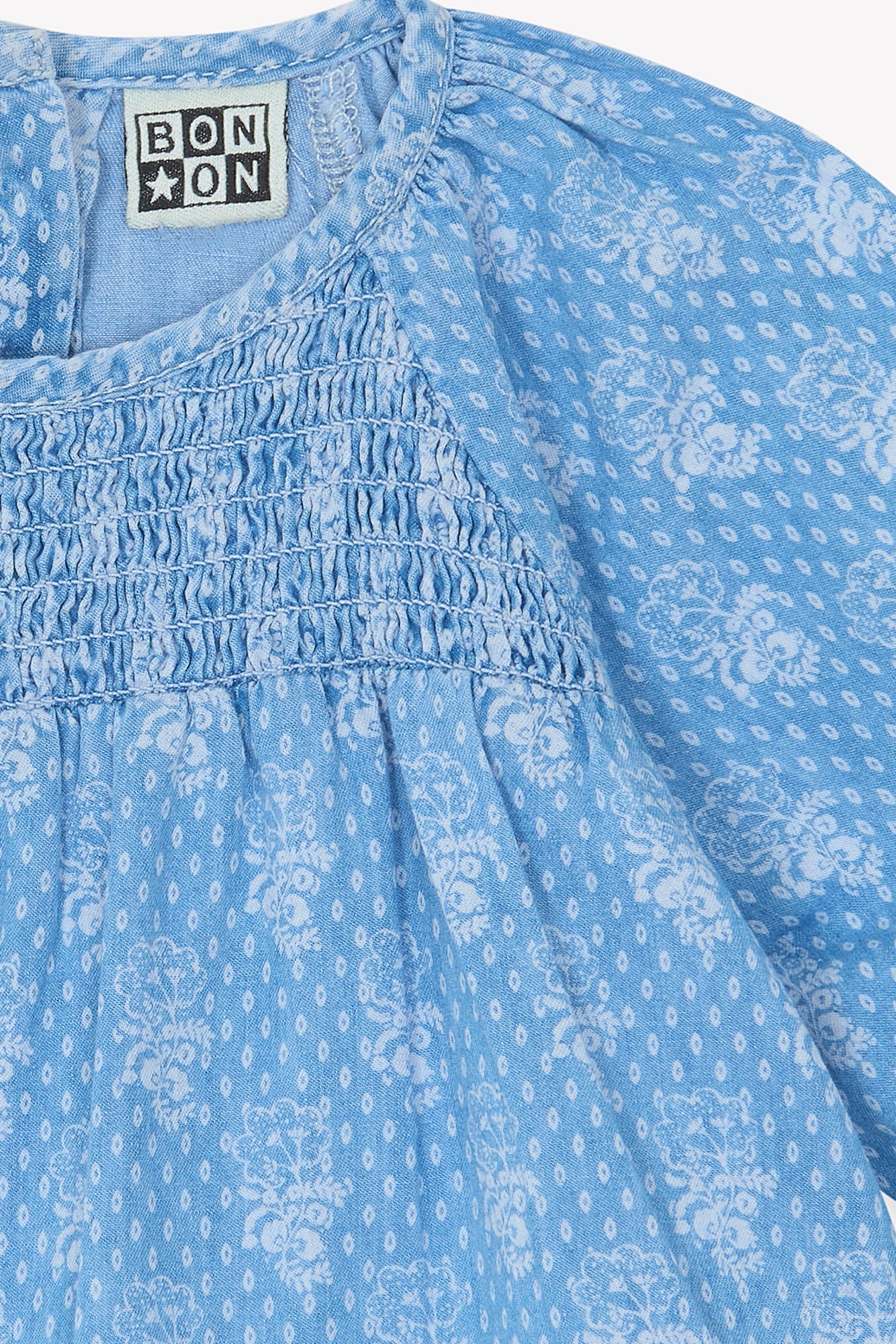 With the Blouse Mathilde from the "New Barn" collection, the little cowgirls will love to twirl! In sweet cotton and Print Mini bandana, it combines comfort and rustic style. His Puffy sleeves and its flared cut add a touch of charm, while the Button On the back facilitates the dressing. Perfect with a little jeans or a Skirt, It is ideal for exploring in style the universe of the great American West!