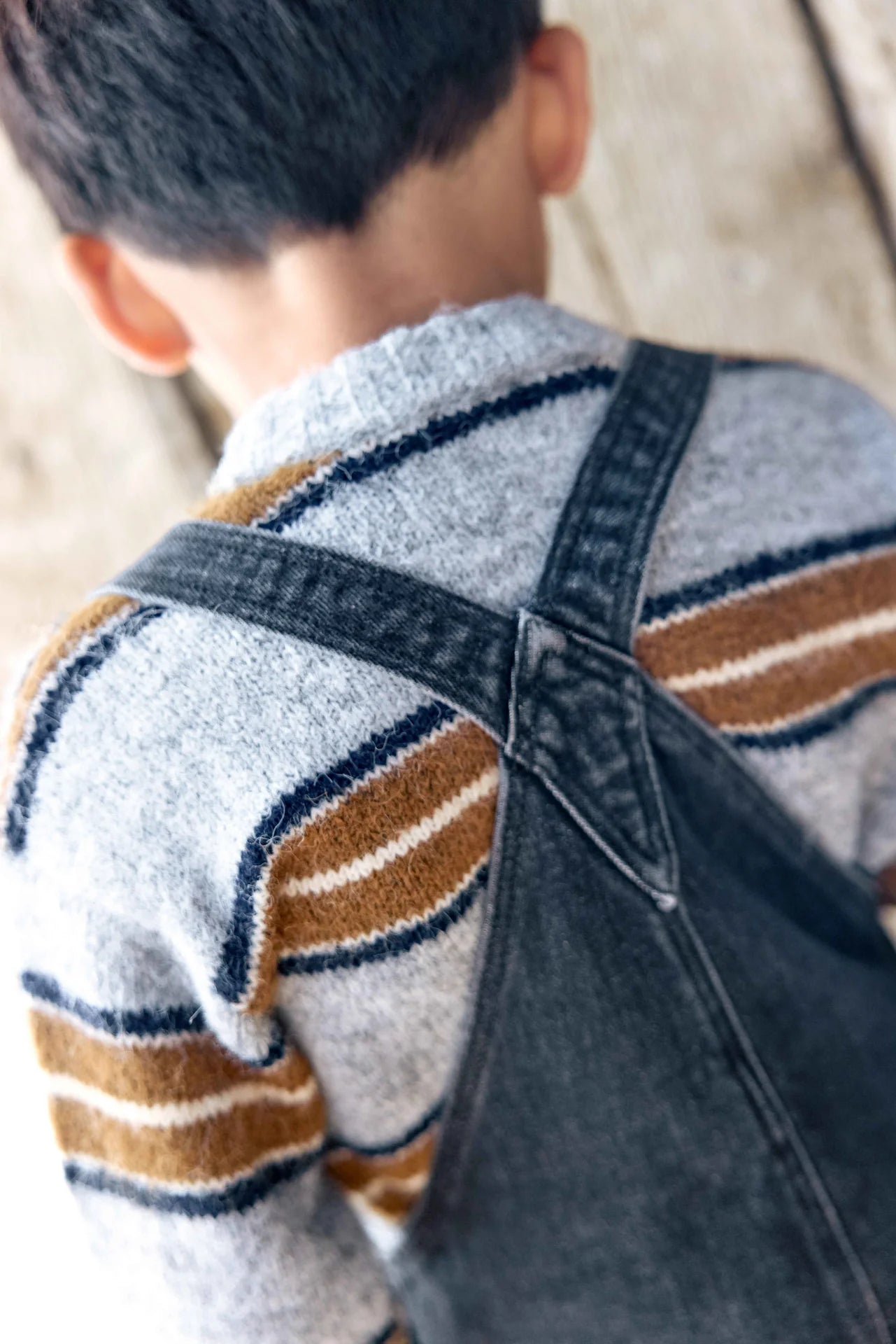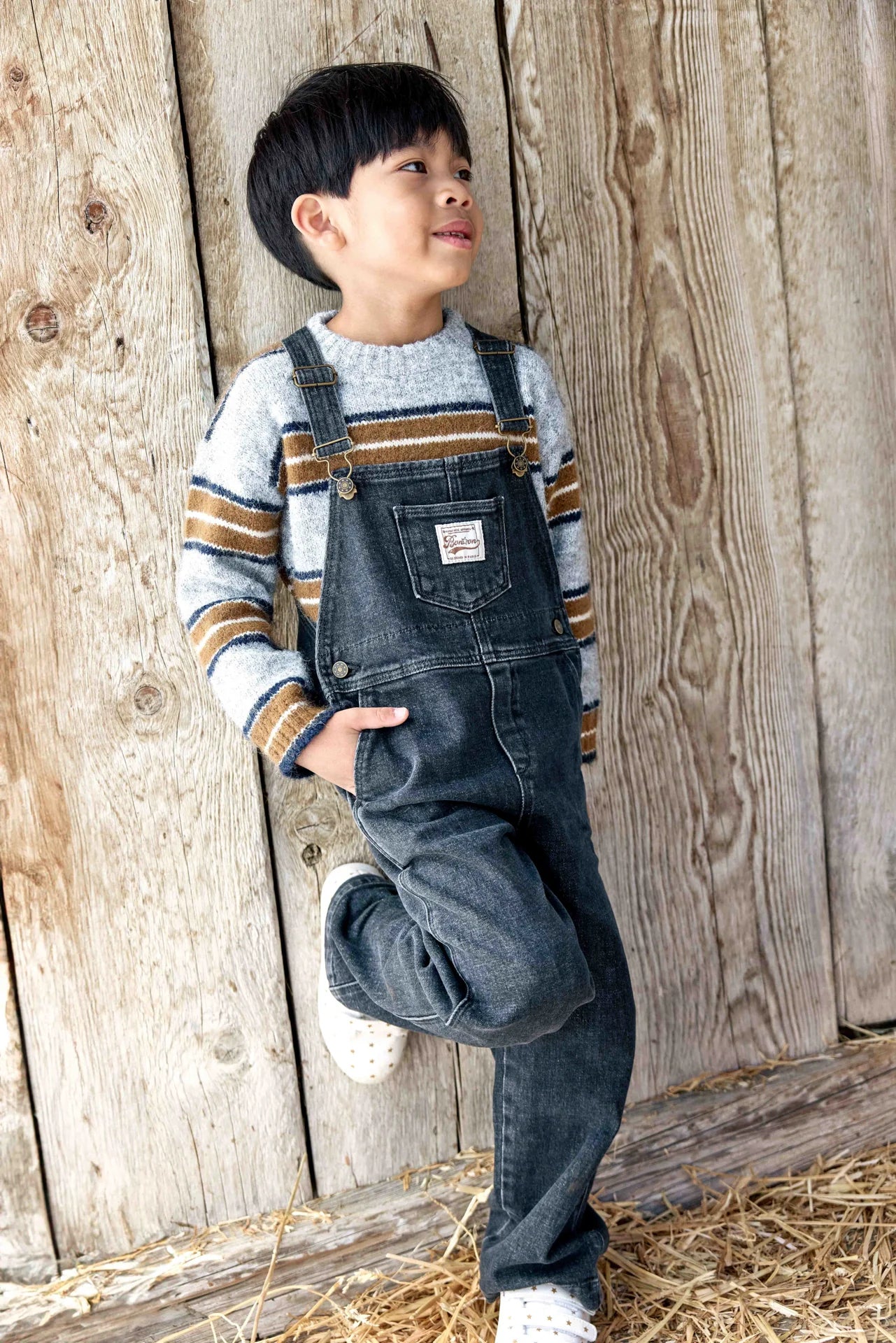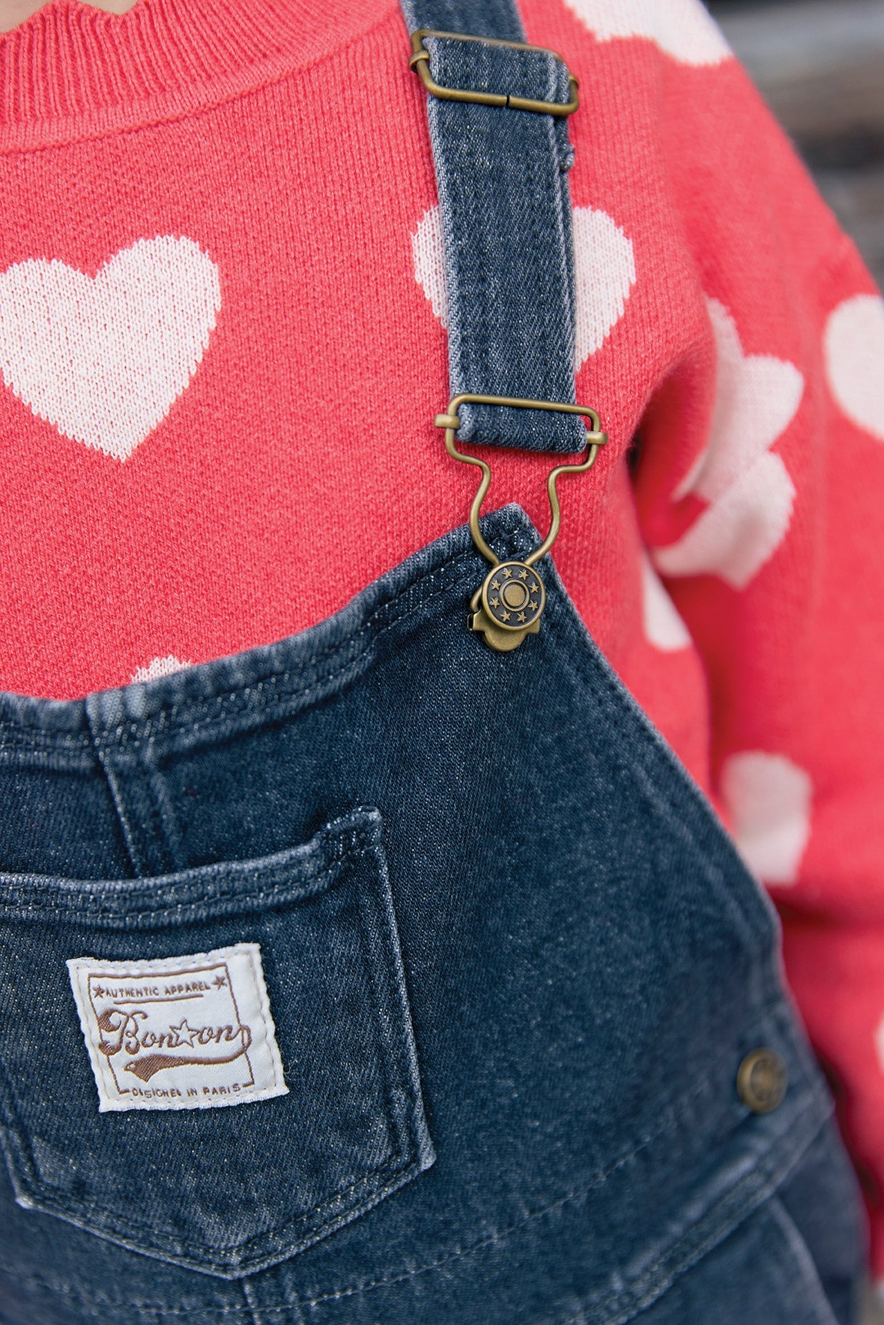 Fall for the Dungaree MOKA in denim Grey, Perfect for small explorers! With its Braces Adjustable and its straight cut, it ensures comfort and style. Its two front pockets and the star pocket on the back add a fun touch. Coming from the "Faroe Island" collection, it goes perfectly with a colorful t-shirt to go on an adventure with allure and fantasy!