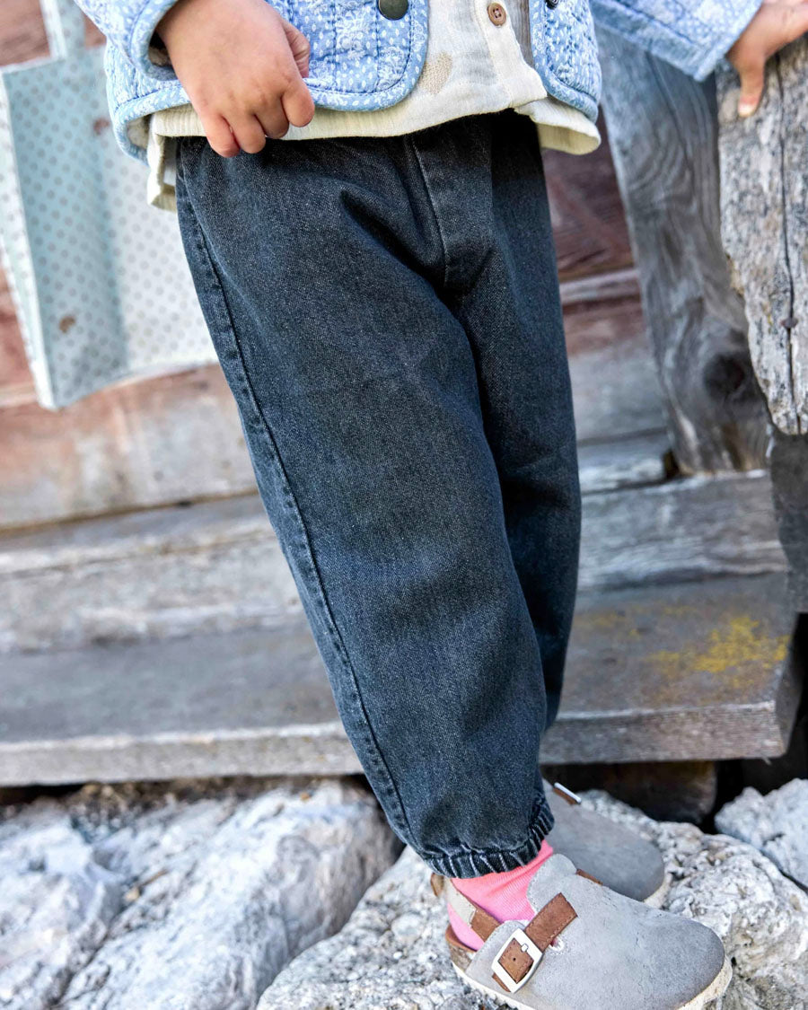 Discover the Trousers Denim Biscotte Grey, Perfect for small explorers of the Faroe Islands! With its elastic size, it offers comfort and style on any occasion. There PocketRear embroidered with flowers adds a touch of poetry to this essential piece. Ideal for an adventure day or a cozy snack, this Trousers marries perfectly with a Sweater cozy or a Blouse Light for an adorable look.