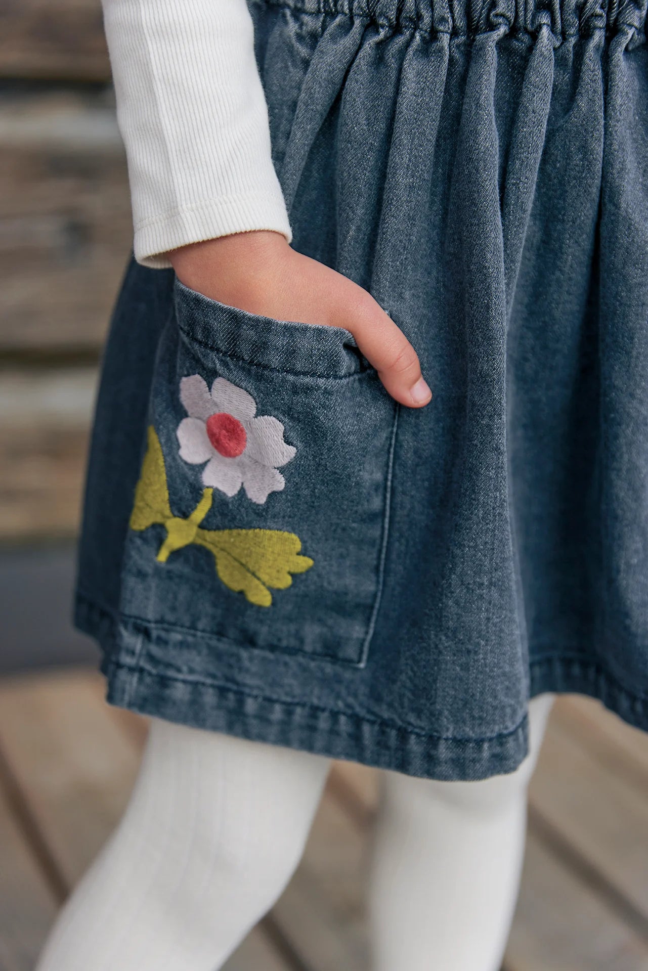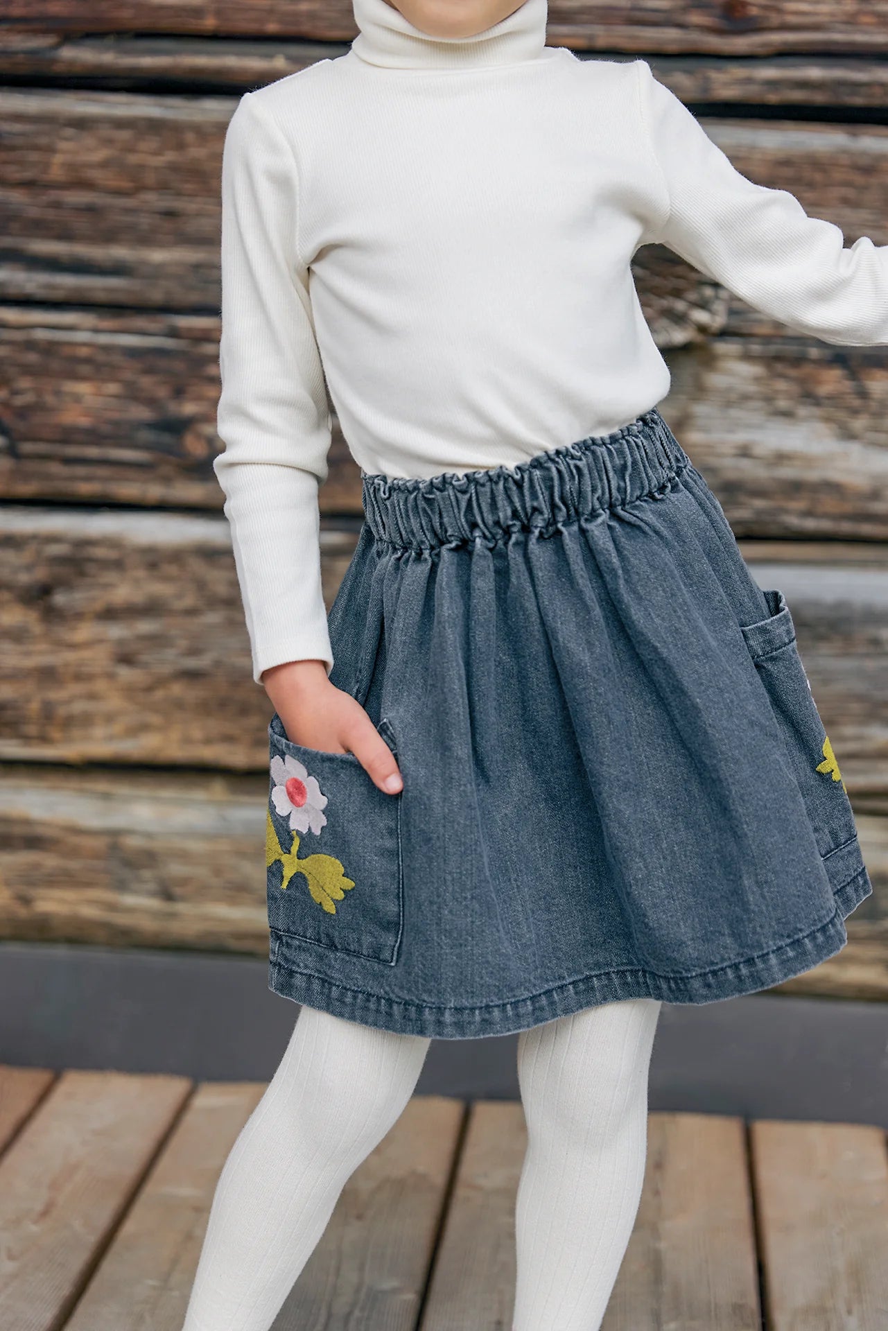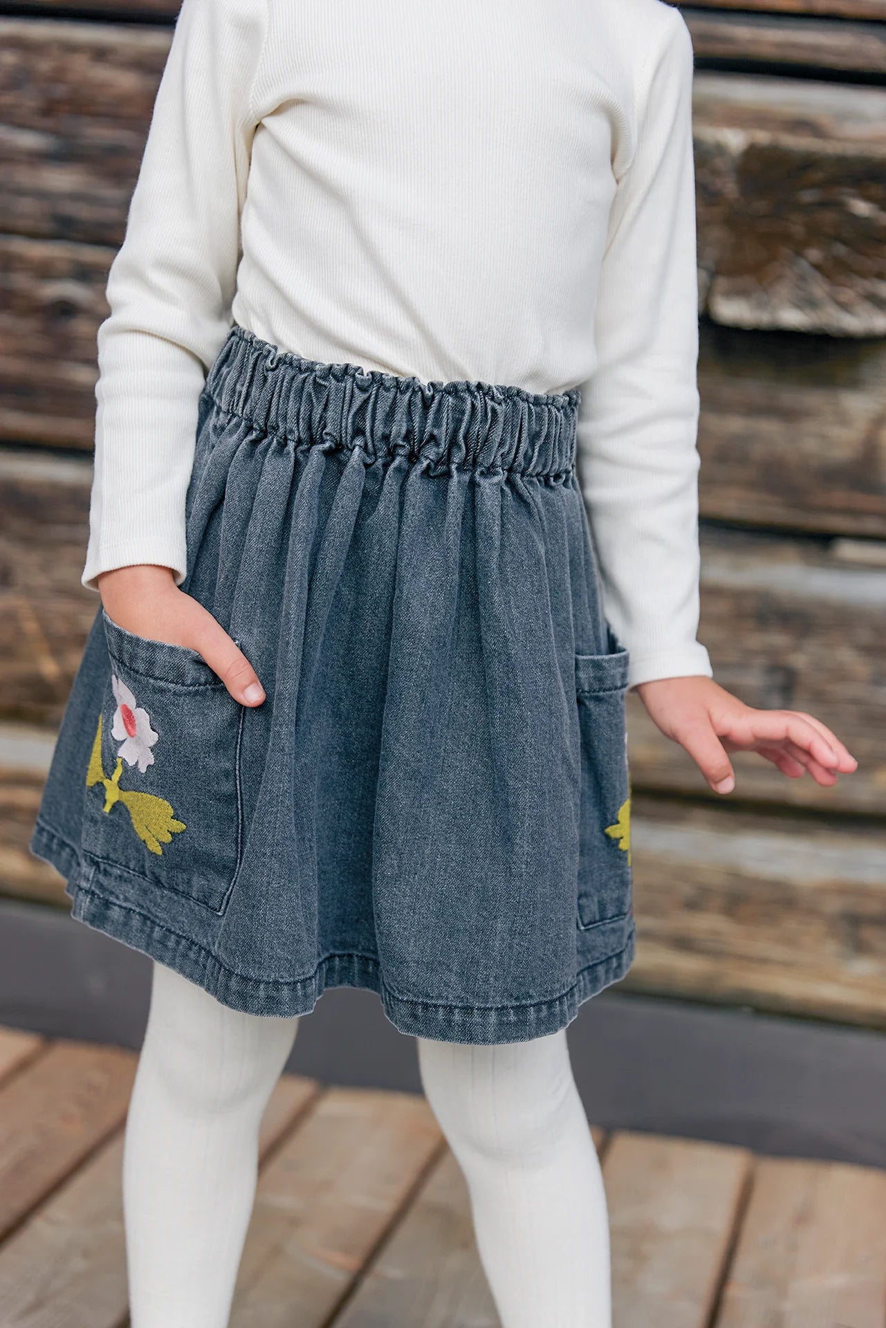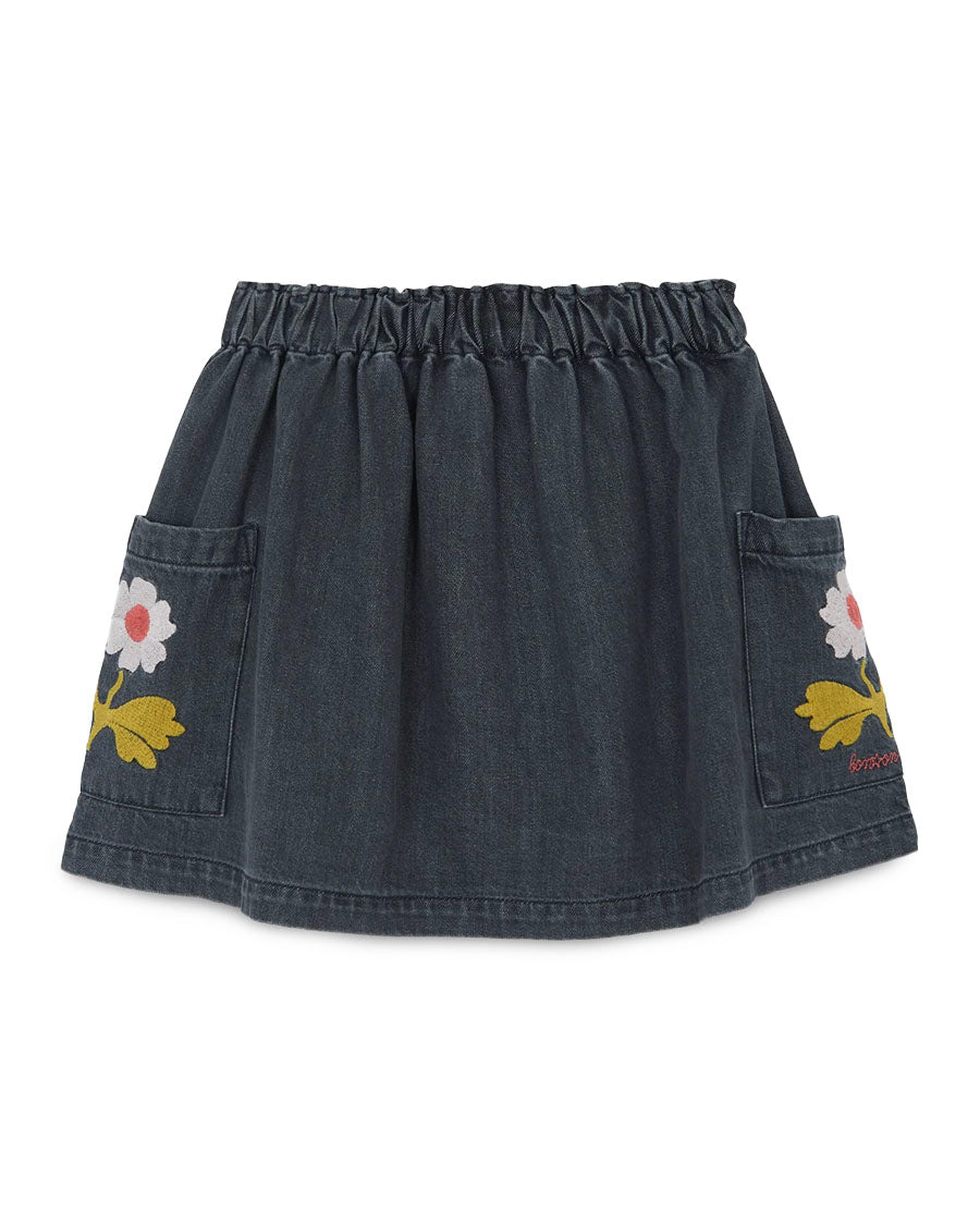There Skirt Mochi, in denim Grey, From the "Faroe Island" collection, invites adventure with its elastic size and flowery pockets! This Skirt Facked offers a fun and comfortable cut, perfect for twirling in the nature or the streets of the city. Made of 100% cotton, it combines style and softness, ideal to associate with a colorful top for a look Kid Full of charm and fantasy!