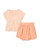 Top & Bloomers Set w/ Floral Embroideries - Salmon