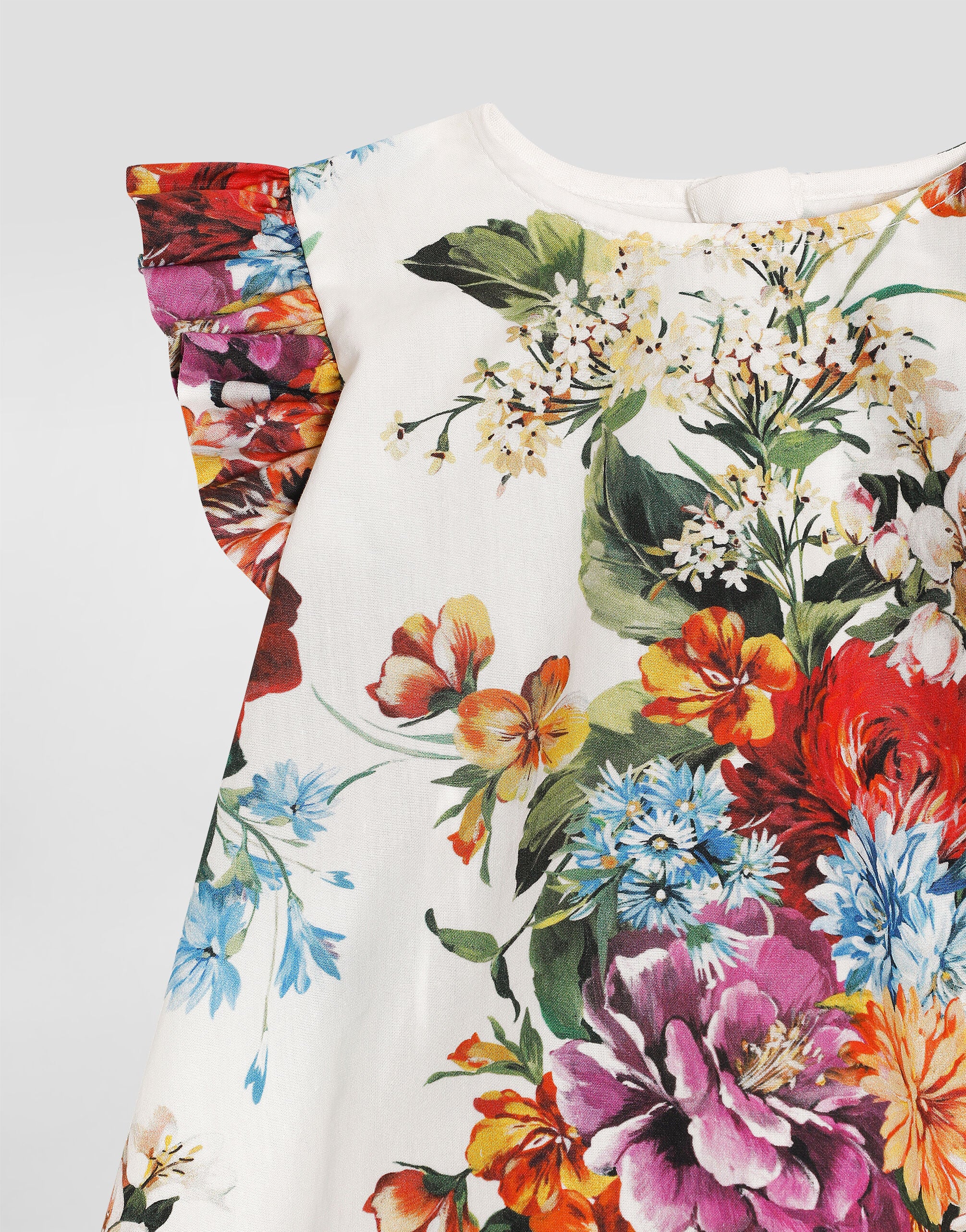 A perfect dress for little girls, featuring a vibrant floral print and an elegant silhouette.