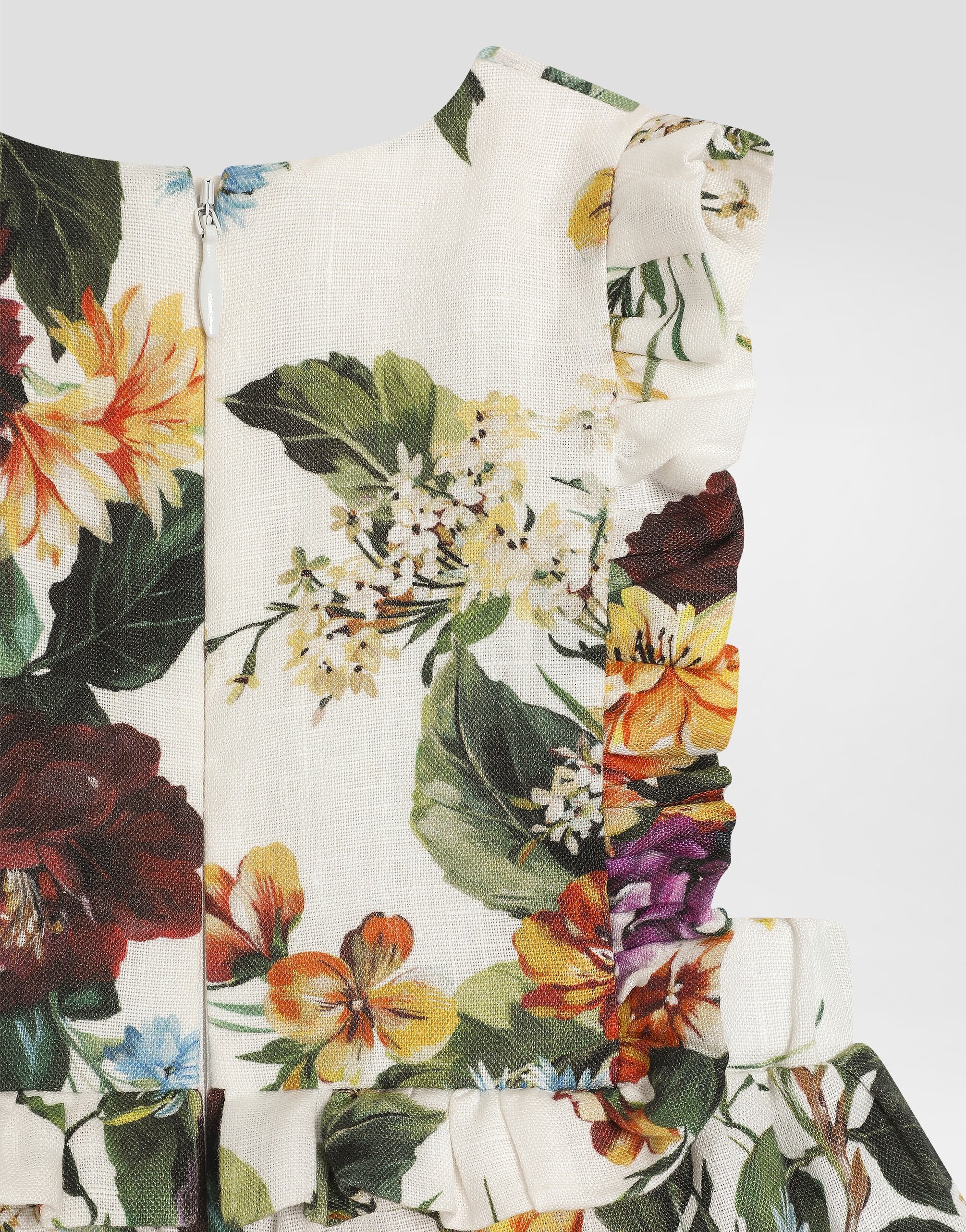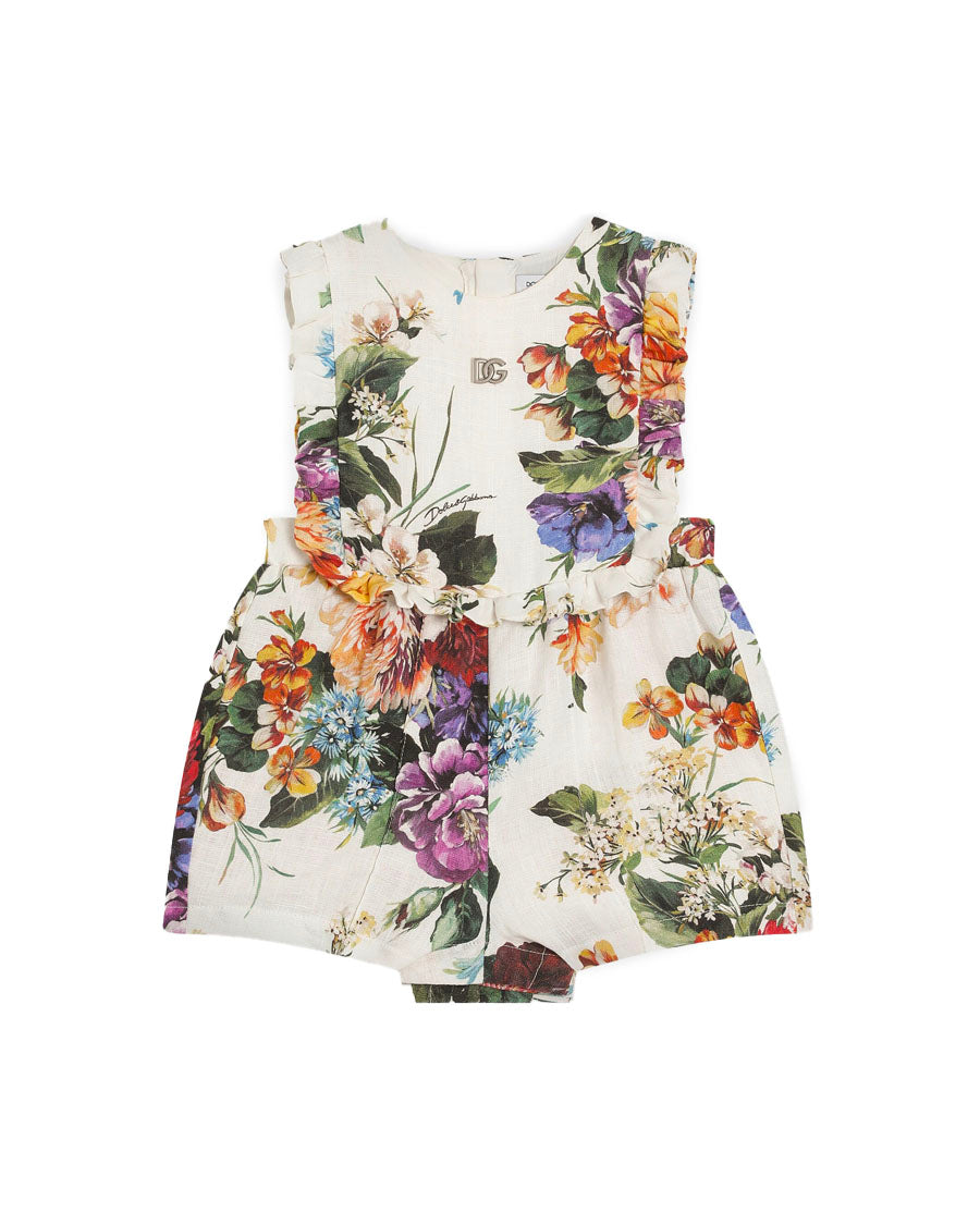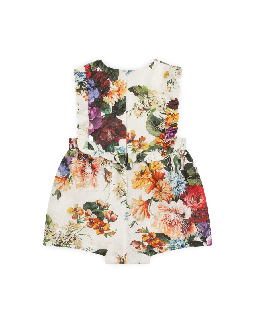 Flower-Print Short-Sleeved Linen Canvas Romper - Multi