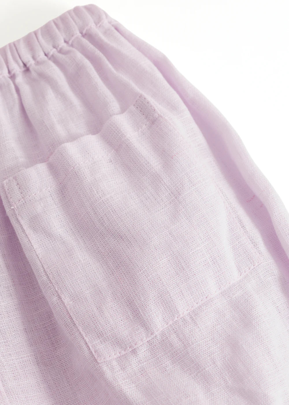 Comfortable shorts/bloomers for baby, with a loose fit with room for a diaper. The shorts/bloomers are in airy and comfortable linen quality, with a pocket on the back and elastic at the waist.